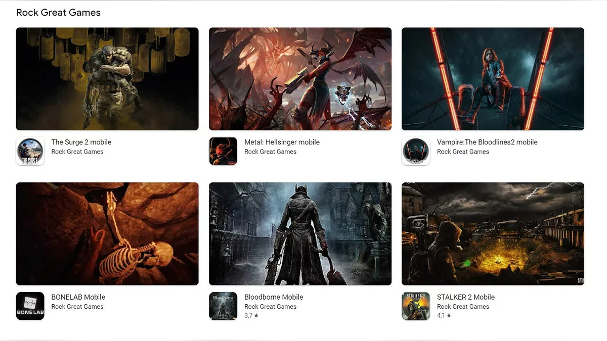 Стоит заметить, что в числе недавно появившихся товаров Rock Great Games в Google Play есть также такие проекты, как Metal: Hellsinger Mobile, Vampire: The Bloodlines 2 Mobile и BONELAB Mobile.