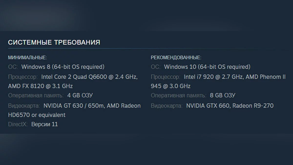 - Видеокарта: NVIDIA GTX 660 или Radeon R9 270.