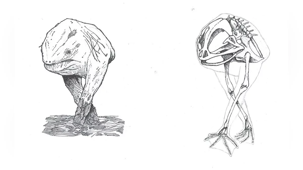 Автор показал сразу две версии существа. Одна из них демонстрирует скелет страйдера.