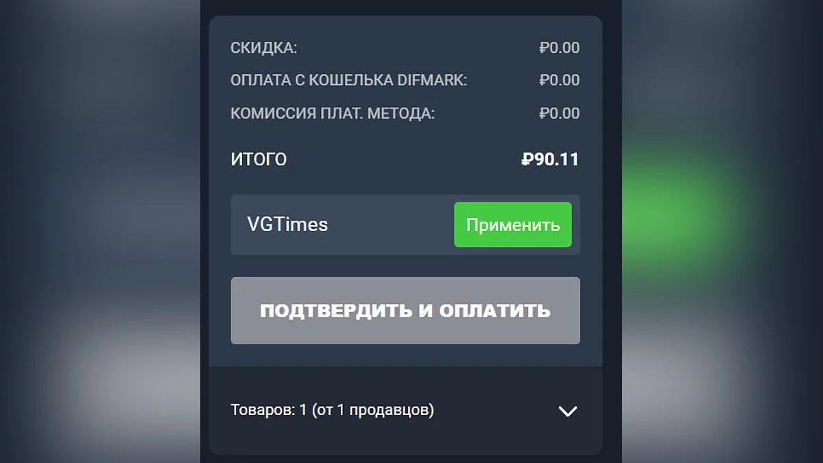 На странице оформления заказа есть поле для ввода промокода. Для получения дополнительной скидки 10% требуется ввести туда следующую команду — VGTimes. После этого нужно нажать кнопку «Применить». Промокод автоматически активируется на все товары в корзине. Кстати, его можно использовать неограниченное количество раз.