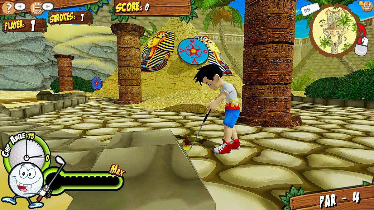 RD's Adventure Mini Golf — виртуальный мини-гольф с одиночным режимом и мультиплеером (общий экран). Есть четыре тематических поля на выбор.