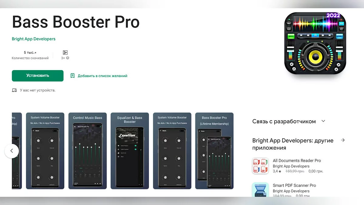 - Bass Booster Pro — программа для усиления баса (загрузить бесплатно);