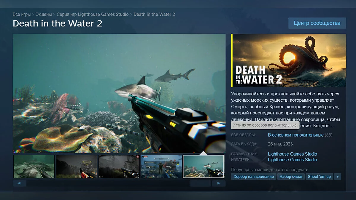 Совсем недавно в Steam состоялся релиз шутера на выживание с элементами хоррора под названием Death in the Water 2, который был разработан независимой студией Lighthouse Games. Проект получил в основном положительные отзывы от геймеров.