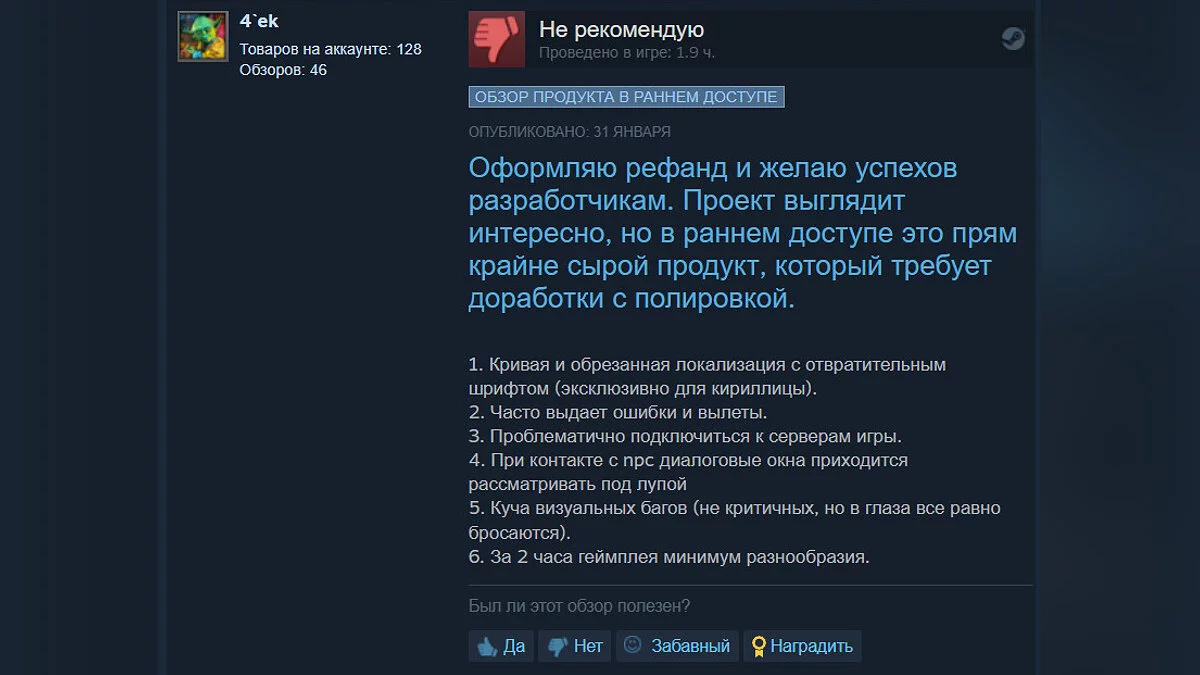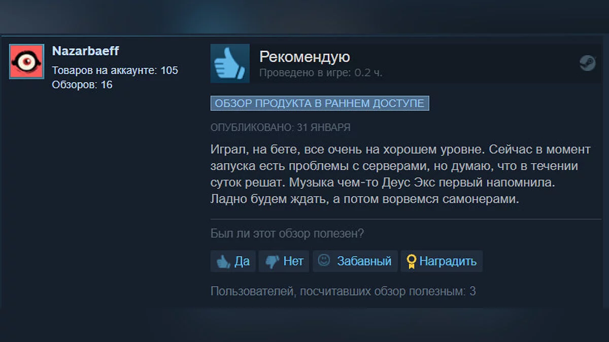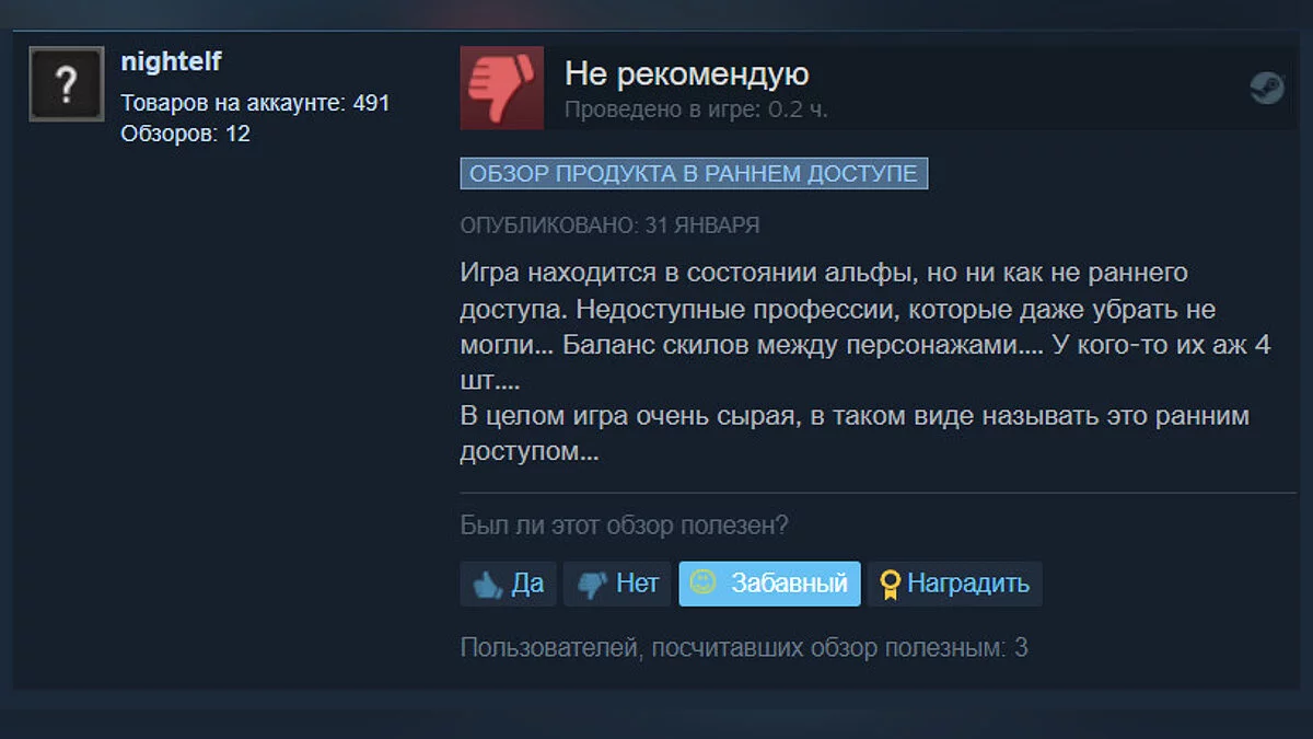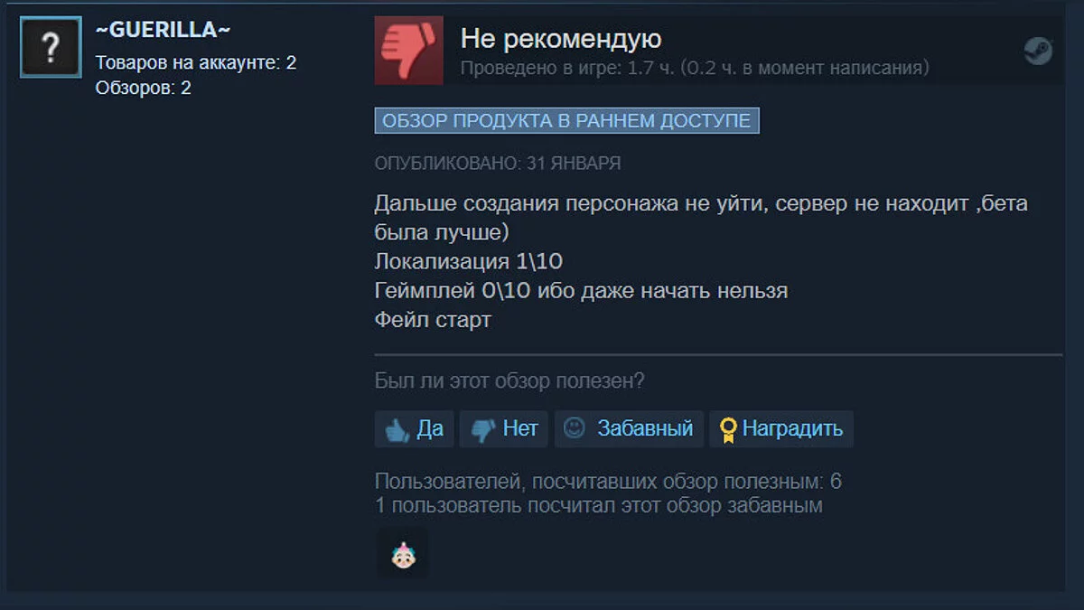 Первые отзывы от геймеров — смешанные. Так, к примеру, на момент написания новости рейтинг игры составляет 52%.