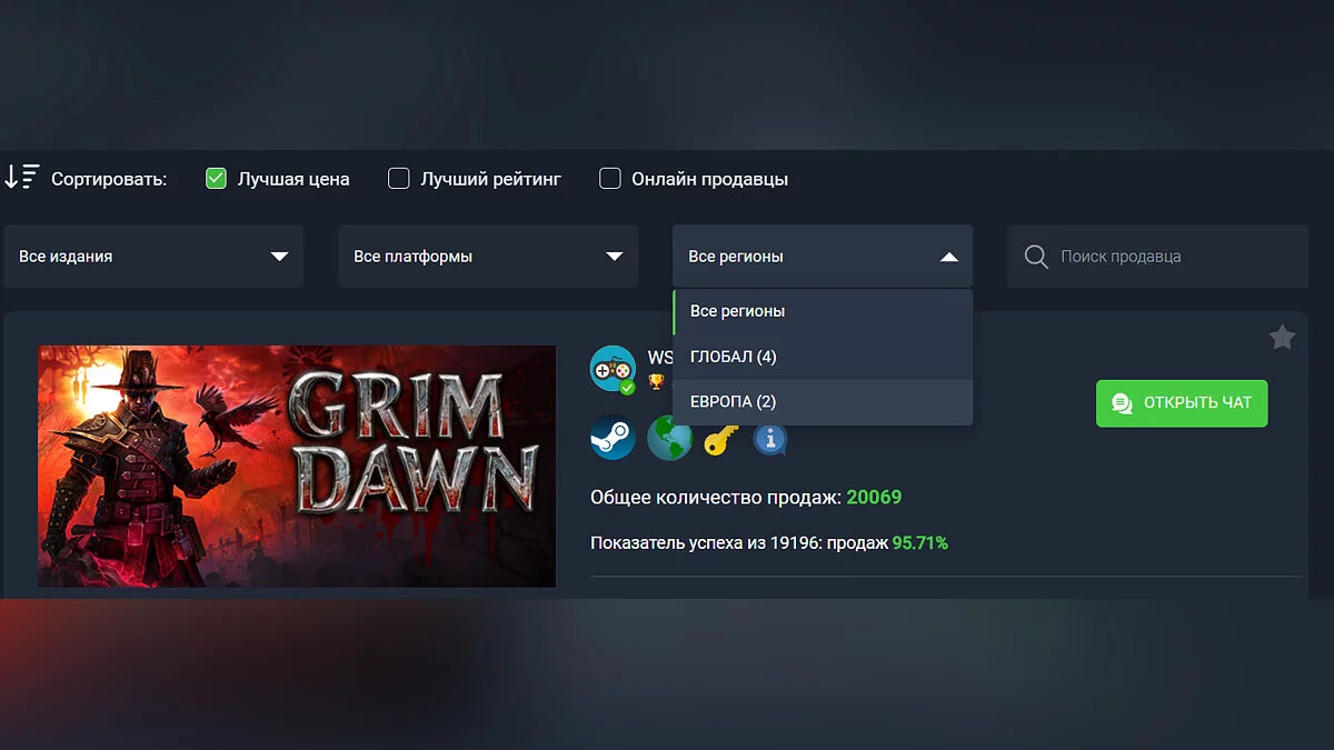 Перед покупкой игры необходимо выбрать регион (есть глобальный, который подходит для всех стран) и платформу (Steam или GOG).