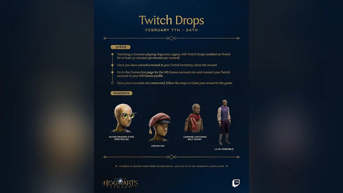- Подключить свою учетную запись Twitch к аккаунту Warner Bros. Games;