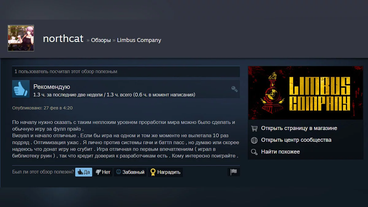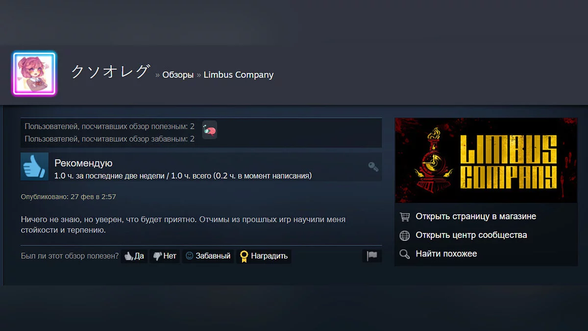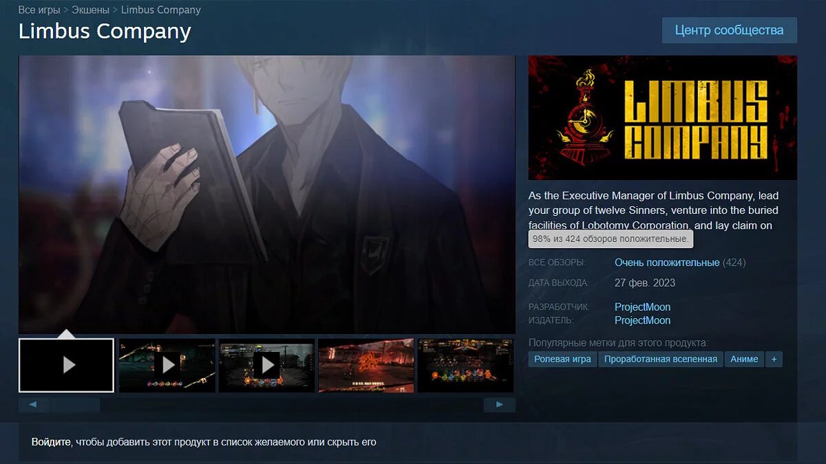 На момент написания новости Limbus Company получила очень положительные отзывы от игроков. Сейчас ее рейтинг составляет 98%.