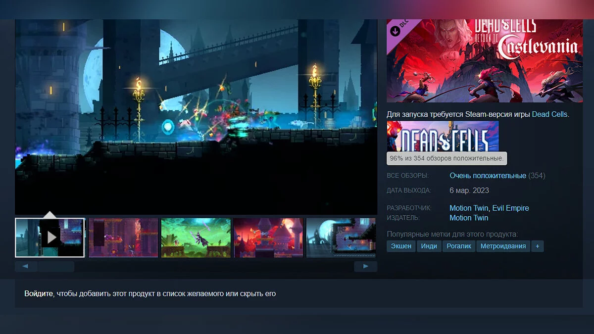 На днях экшен-рогалик Dead Cells получил крупное дополнение-кроссовер — Return to Castlevania. Геймеры в Steam уже поставили этому DLC первые оценки. Они очень положительные.
