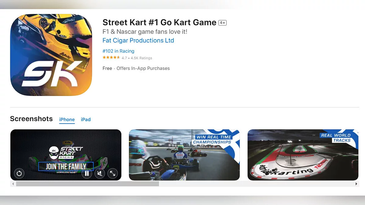 - Street Kart #1 Go Kart Game — реалистичный гоночный симулятор, в котором игроки управляют картами (загрузить бесплатно).