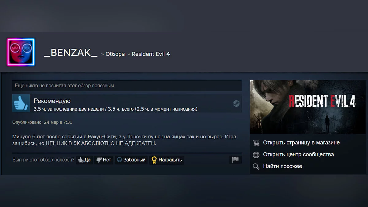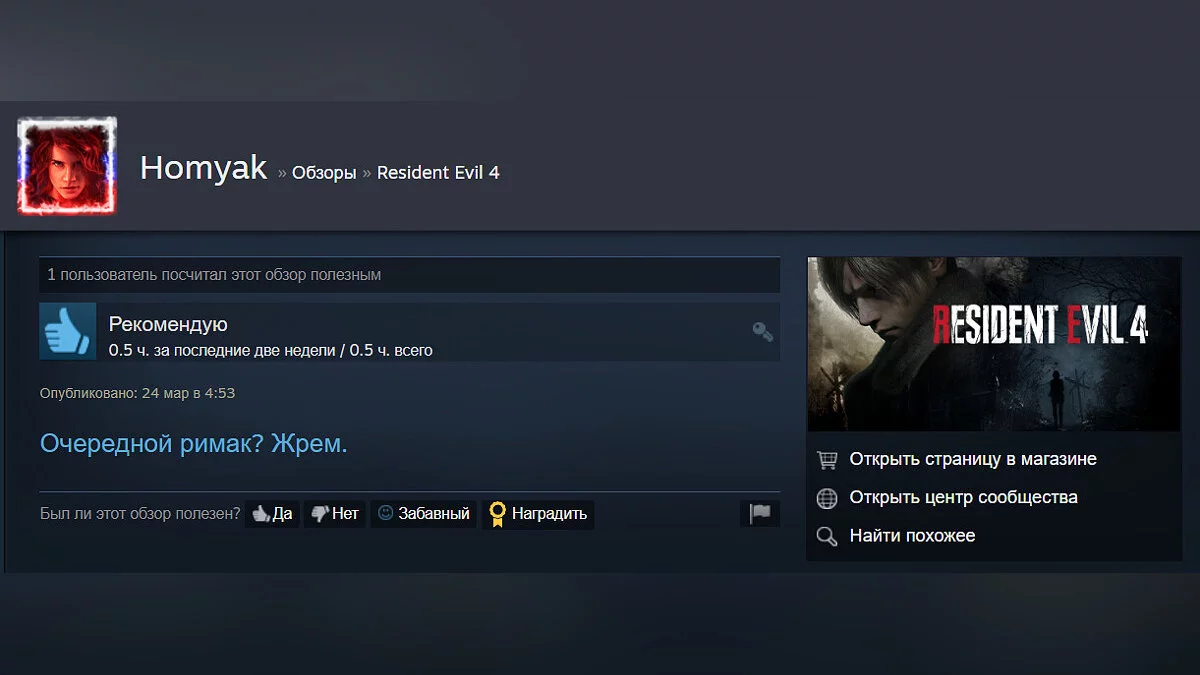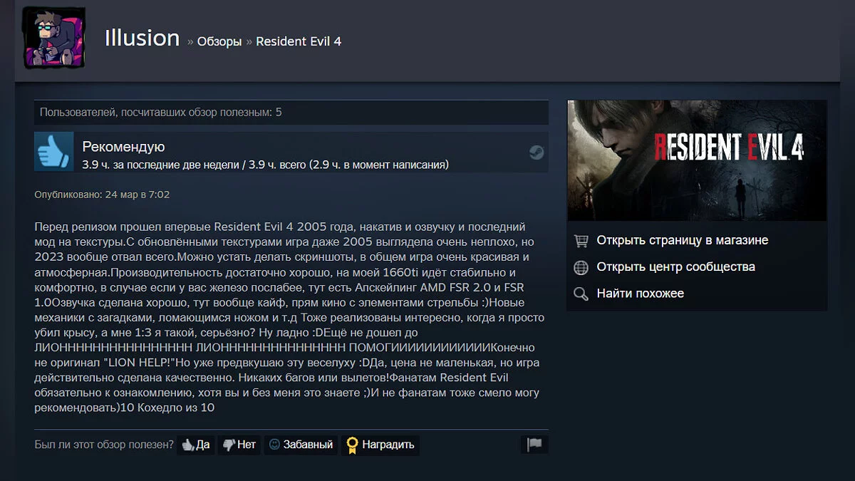 На PC и консолях вышел ремейк культовой Resident Evil 4. Появились первые реакции и отзывы от геймеров в Steam
