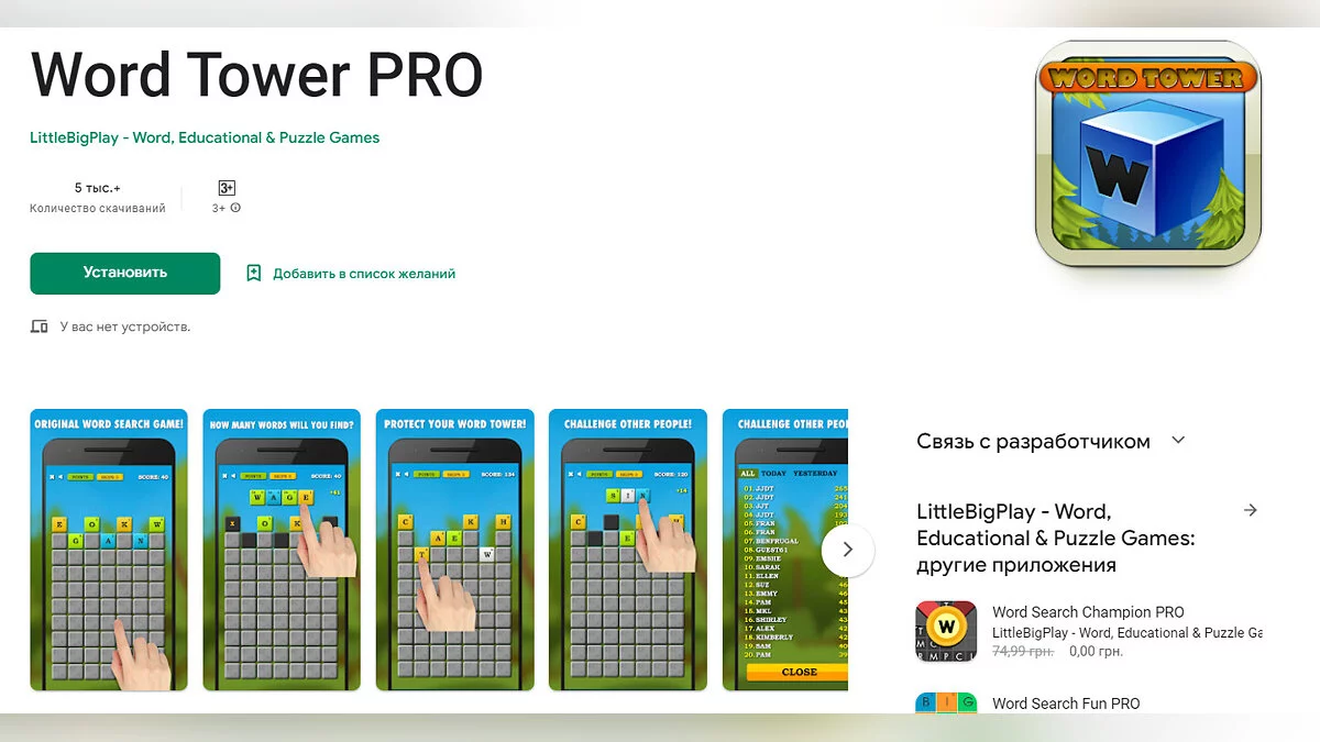 - Word Tower PRO — головоломка, в которой нужно разгадывать слова. Стоит заметить, что в игре доступно свыше 500 000 английских слов (загрузить бесплатно);