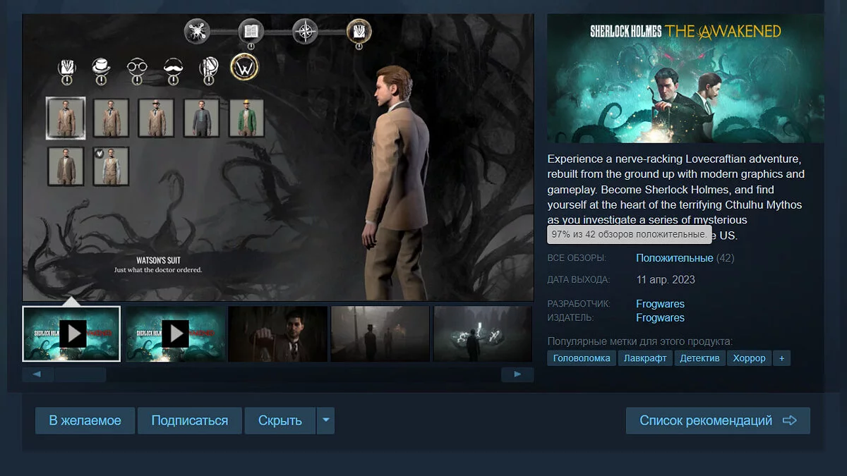 Ремейк Sherlock Holmes The Awakened вышел на PC, PS4, PS5, Xbox One и Xbox Series X/S. В российском регионе Steam игра недоступна.