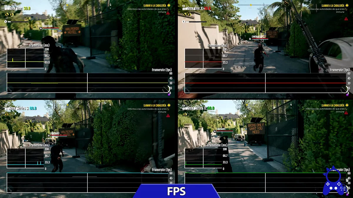Во втором видео Dead Island 2 сравнили на Xbox One S (900p и 30 FPS), Xbox One X (1440p и 30 FPS), Xbox Series S (1080p и 60 FPS) и Xbox Series X (1800p и 60 FPS).