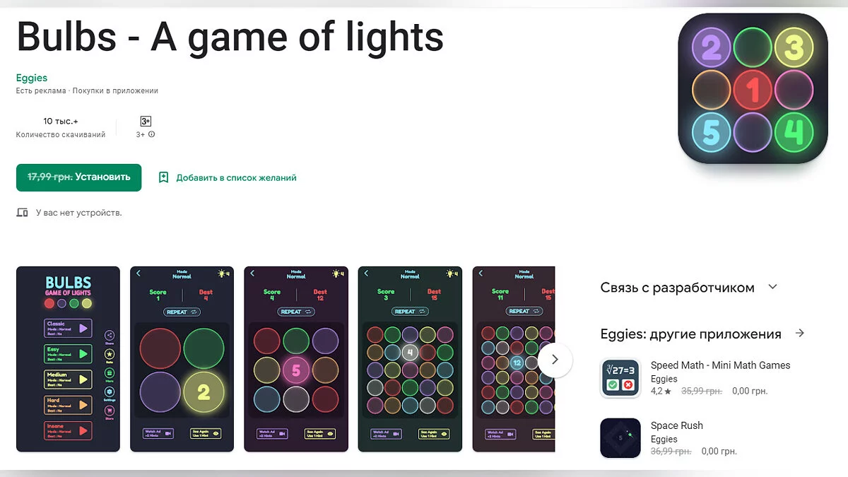 - Bulbs — цифровая версия популярной в 70-х головоломки «Саймон», направленной на развитие и тренировку памяти и скорости реакции (загрузить бесплатно);