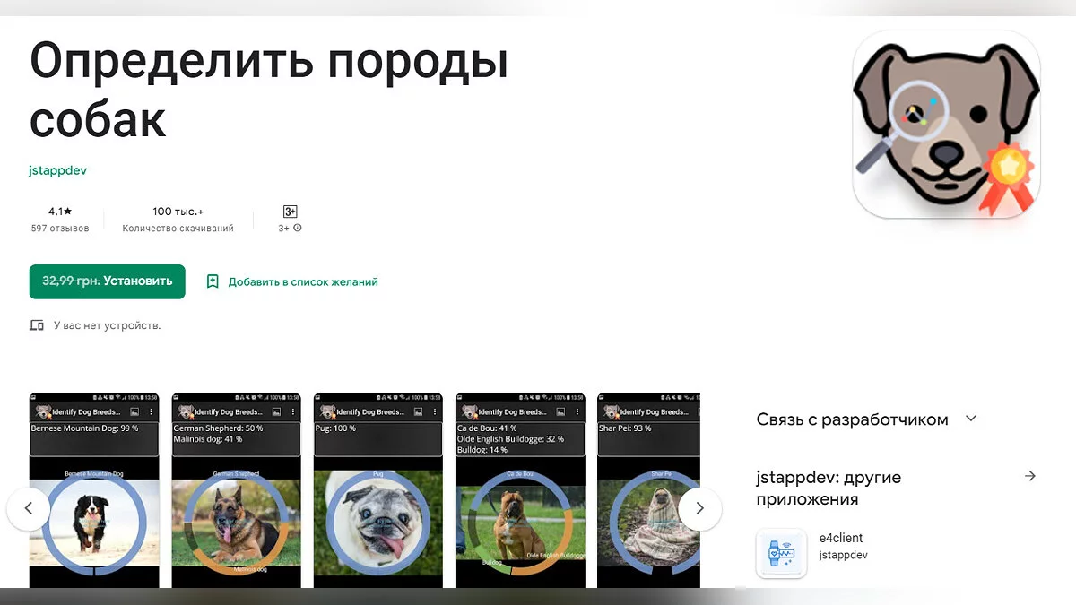 - Identify Dog Breeds Pro — игра-викторина, в которой игрок должен угадывать породы собак по фотографиям (загрузить бесплатно);