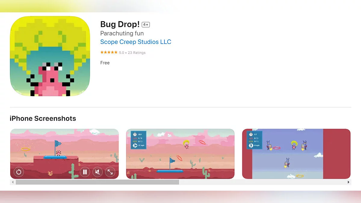 - Bug Drop! — аркадная игра, в которой нужно помочь маленькому жучку прыгнуть с парашютом и собрать по пути как можно больше колечек (загрузить бесплатно).