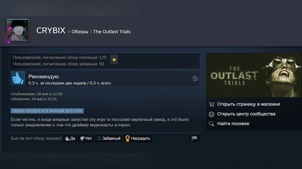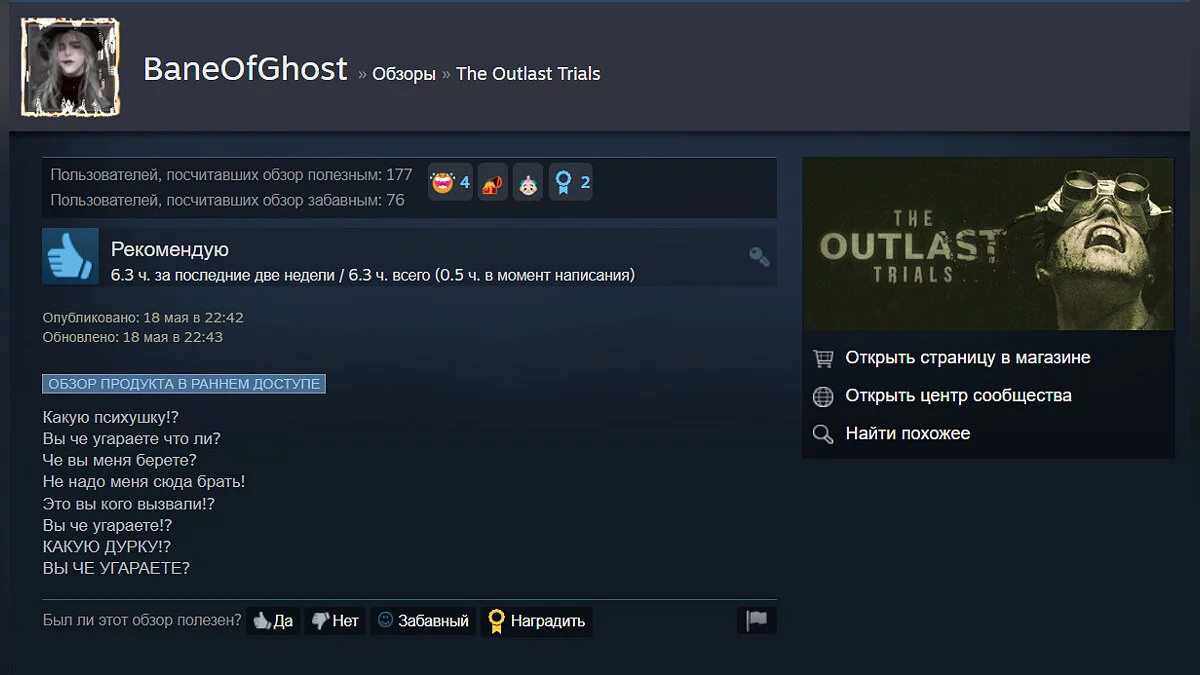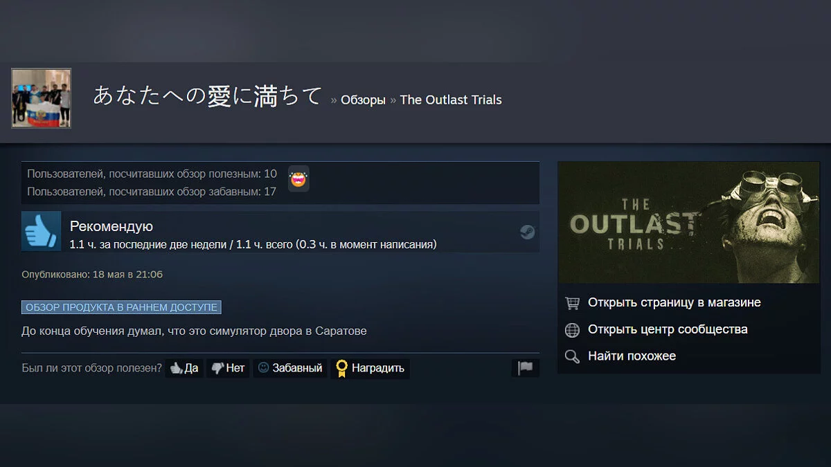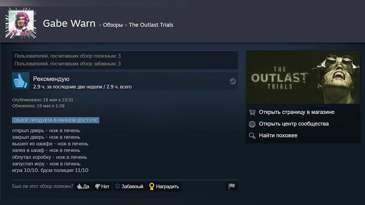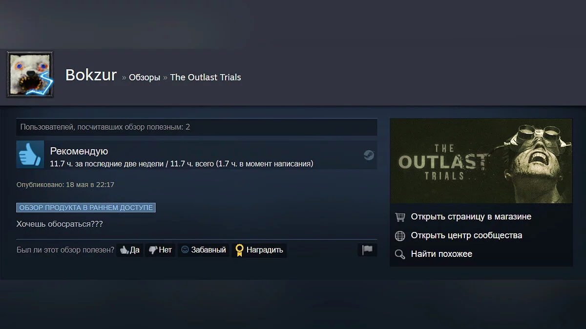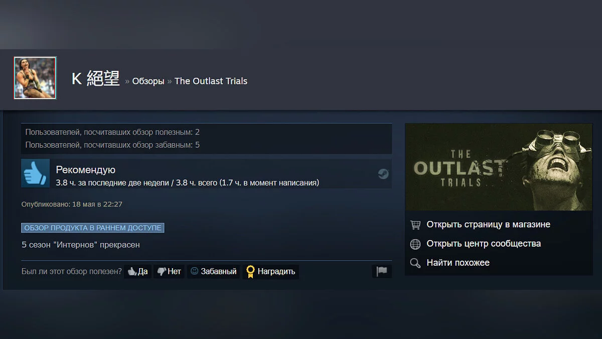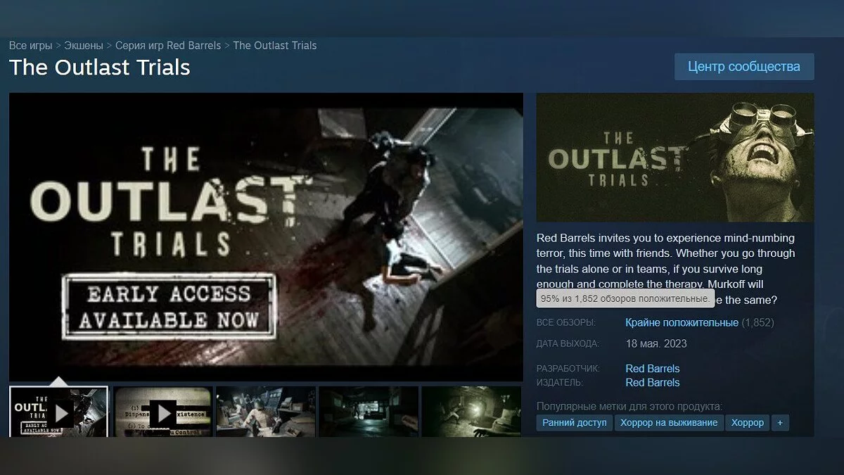 Вчера (18 мая) в раннем доступе Steam вышел долгожданный хоррор The Outlast Trials, который менее чем за сутки получил почти две тысячи положительных отзывов.