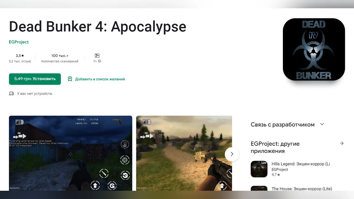 - Dead Bunker 4: Apocalypse — постапокалиптический экшен-хоррор, перекидывающий игрока в мир, в котором человечество постигла зомби-эпидемия (загрузить бесплатно);