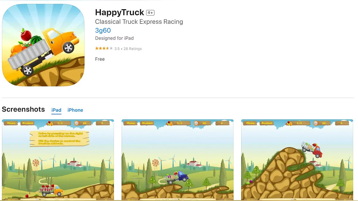 - HappyTruck — гоночная игра с видом сбоку, в которой нужно доставлять фрукты на грузовике (загрузить бесплатно).