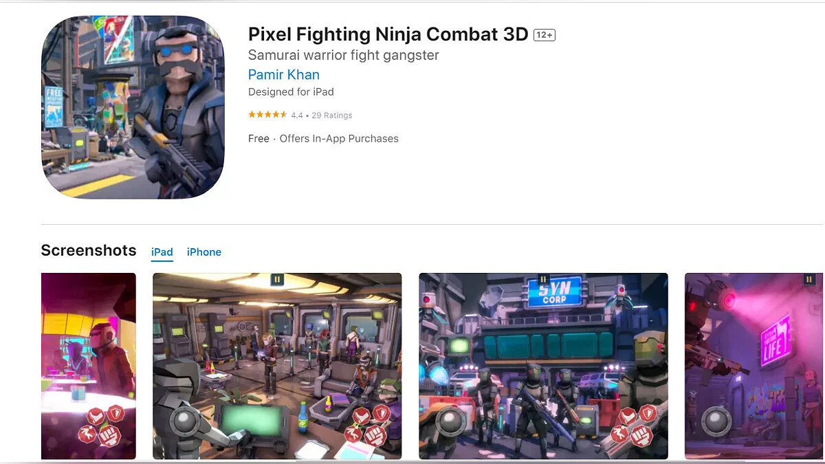 - Pixel Fighting Ninja Combat 3D — экшен, в котором игроки с помощью приемов кунг-фу должны остановить смертоносных убийц и спасти мир (загрузить бесплатно);