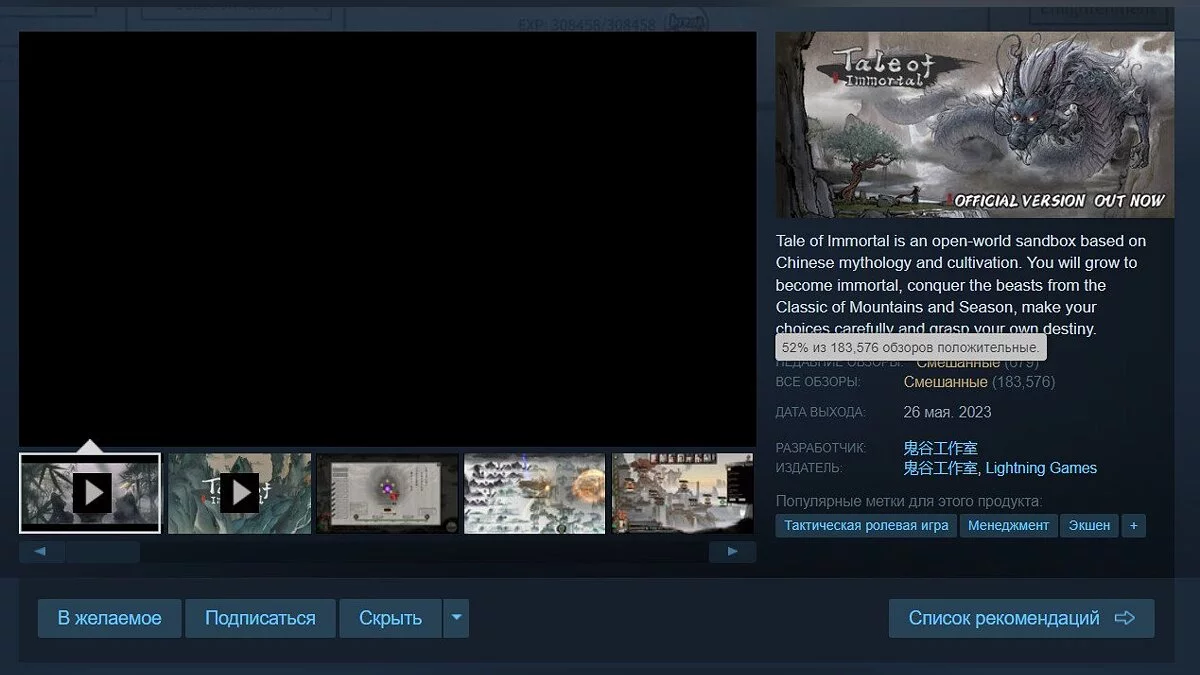 В Steam состоялся релиз полной версии популярной китайской песочницы Tale of Immortal, которая пробыла в раннем доступе около двух лет и получила свыше 180 тысяч отзывов. На момент написания новости ее рейтинг составляет 52%.
