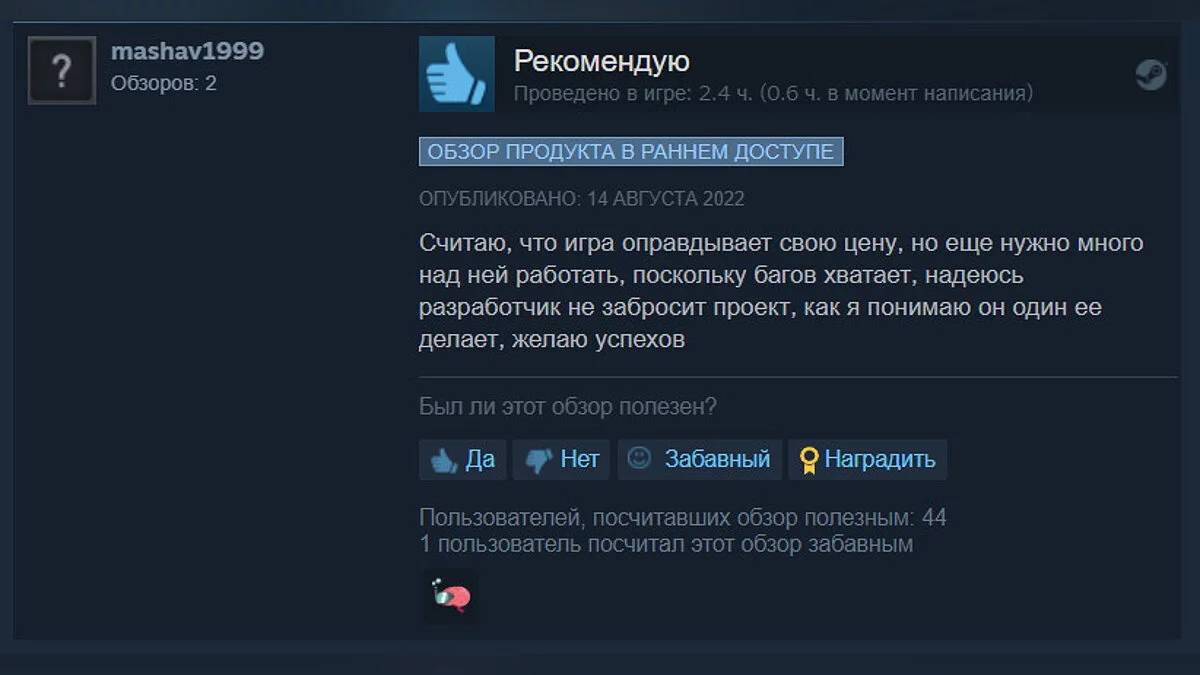 На момент написания новости игра имеет смешанные отзывы от геймеров (рейтинг 62%):