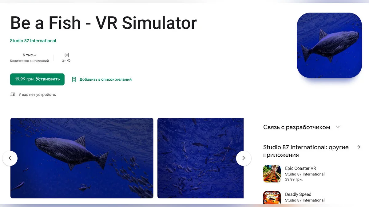 - Be a Fish — реалистичный симулятор рыбы для виртуальной реальности (загрузить бесплатно);
