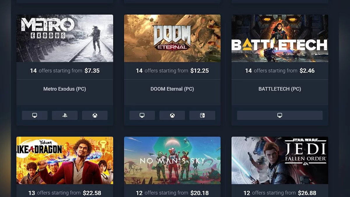 Игры доступны в виде ключей для разных площадок (Steam, Origin и т.д.). Самые топовые из них: