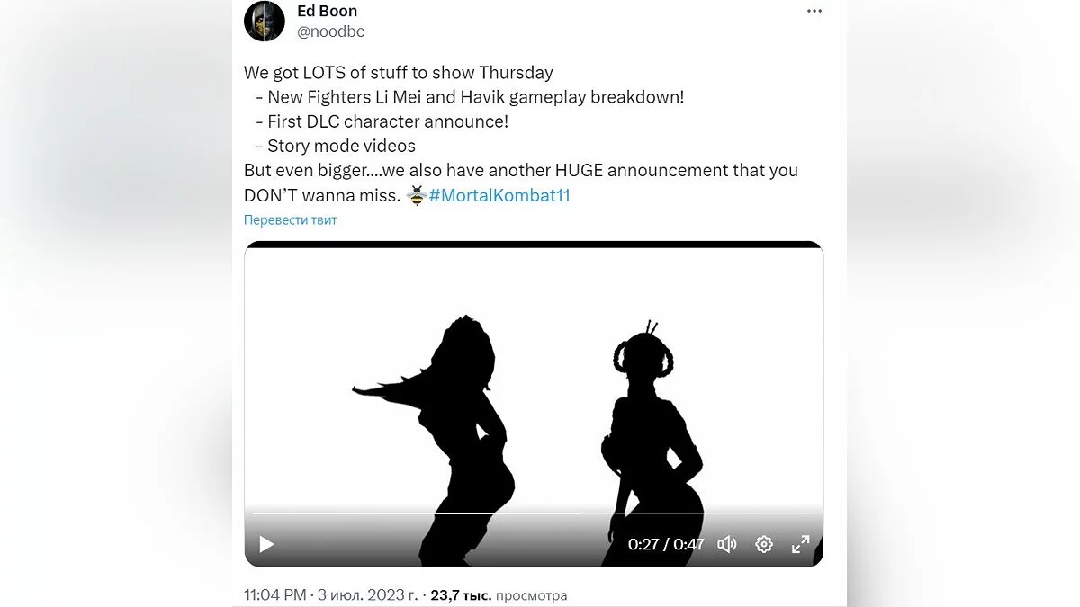 У нас есть много вещей, которые мы хотим показать в этот четверг: геймплей новых бойцов (Ли Мей и Хавик), анонс первого персонажа из DLC, демонстрация (видео) режима истории. Но и это еще не все... у нас также есть еще один ОГРОМНЫЙ анонс, который вы не захотите пропустить.