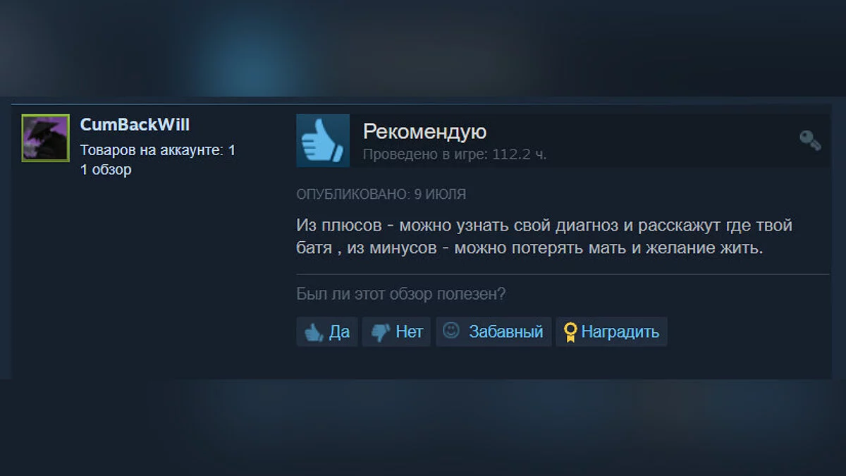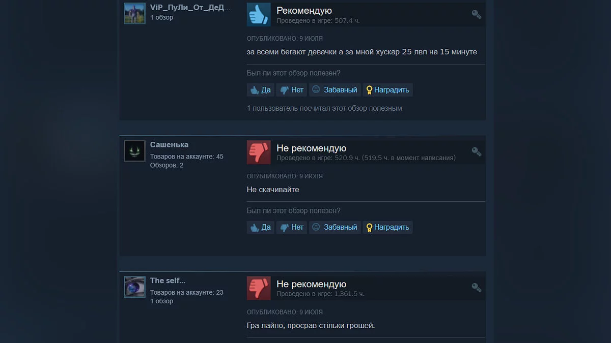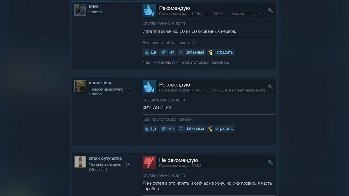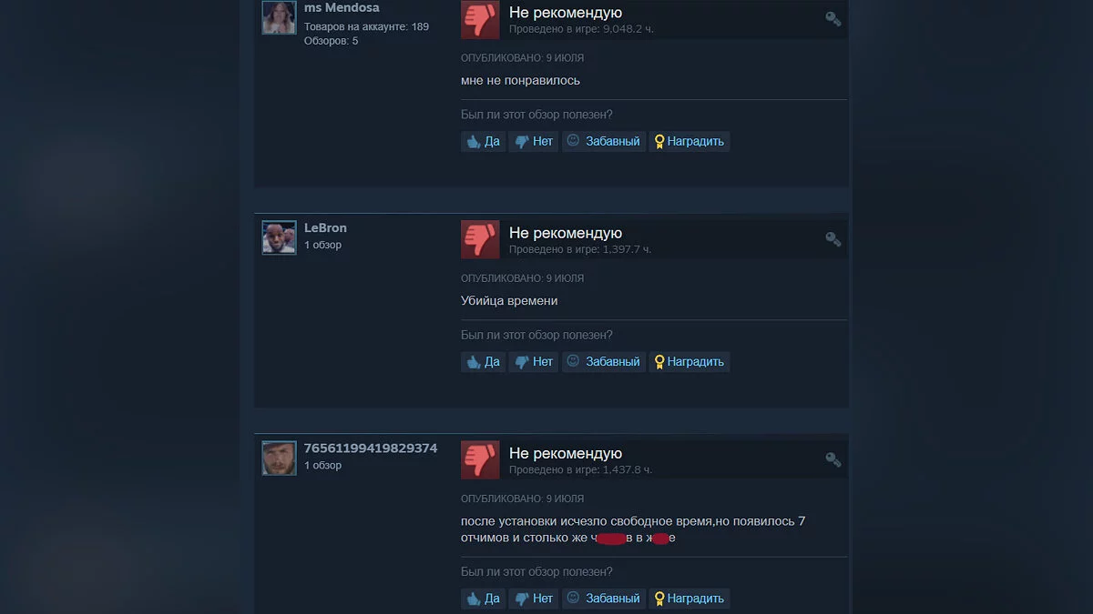 Вот какие отзывы сегодня оставили геймеры на страничке проекта в Steam: