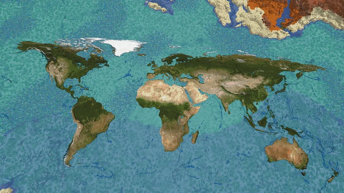 Проект включает в себя шесть из семи континентов. Игрок не стал воссоздавать Антарктиду из-за проблем с точным воспроизведением ее вытянутого вида.