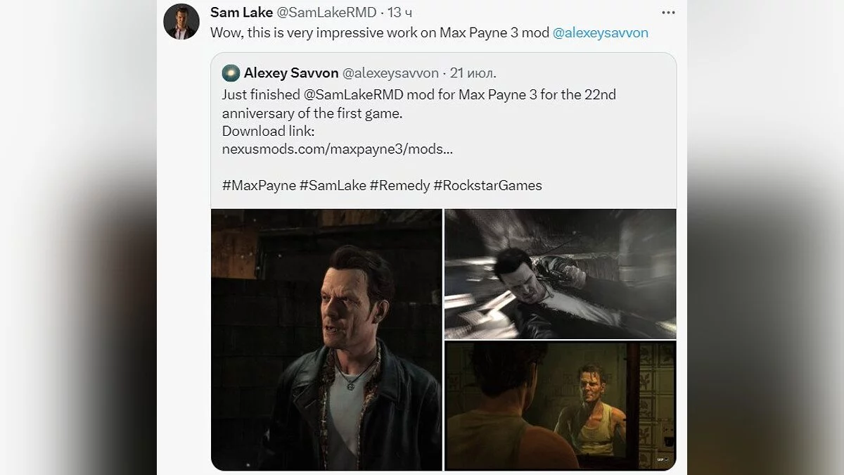 Создатель Max Payne Сэм Лейк отреагировал на мод с его внешностью для третьей части