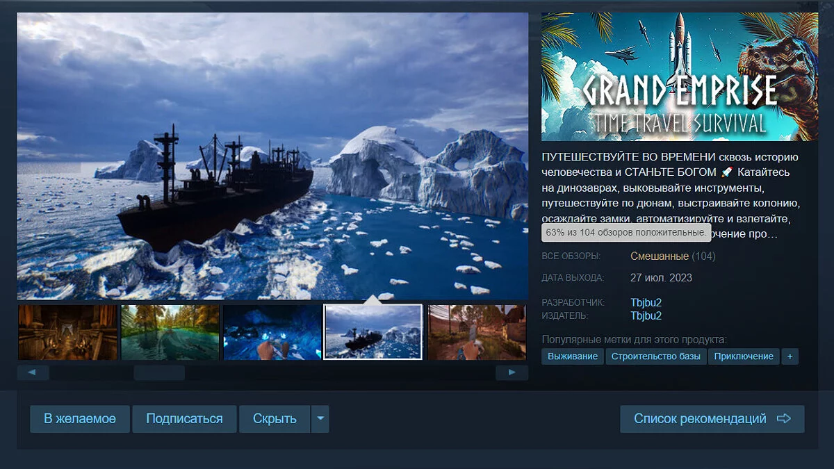 Купить Grand Emprise: Time Travel Survival в Steam можно за 639 руб с учетом скидки 10% (действует до 3 августа). Ранее разработчики выпустили бесплатный пролог, но сейчас он недоступен.