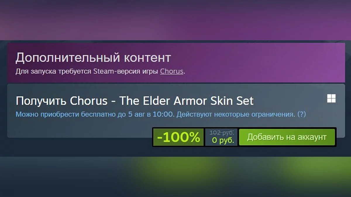 Халява: в Steam проходит бесплатная раздача Chorus — The Elder Armor Skin Set