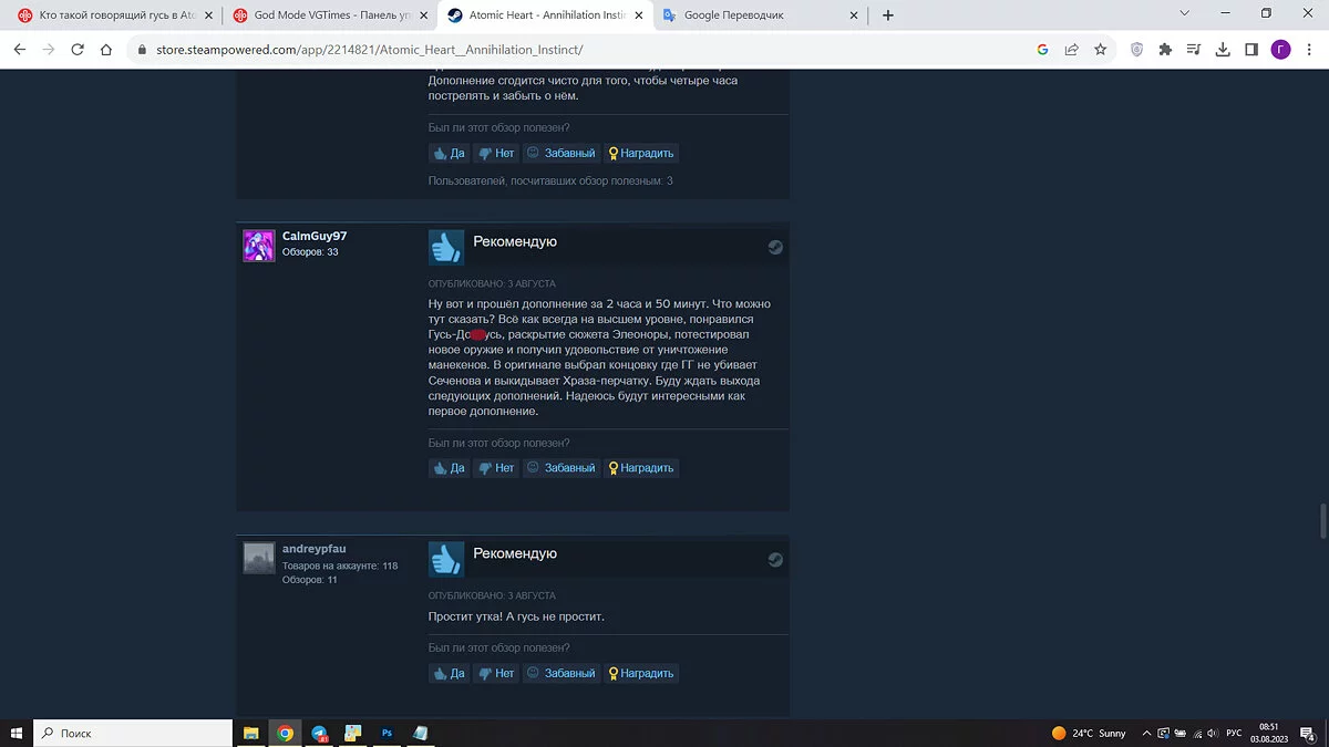 «Гусь булит меня» — появились отзывы и реакции геймеров в Steam на Atomic Heart: Annihilation Instinct