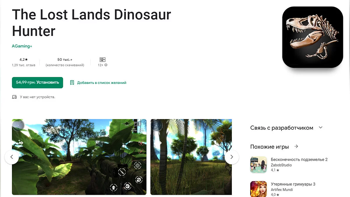 - The Lost Lands Dinosaur Hunter — симулятор выживания, где главными противниками выступают кровожадные динозавры (загрузить бесплатно);