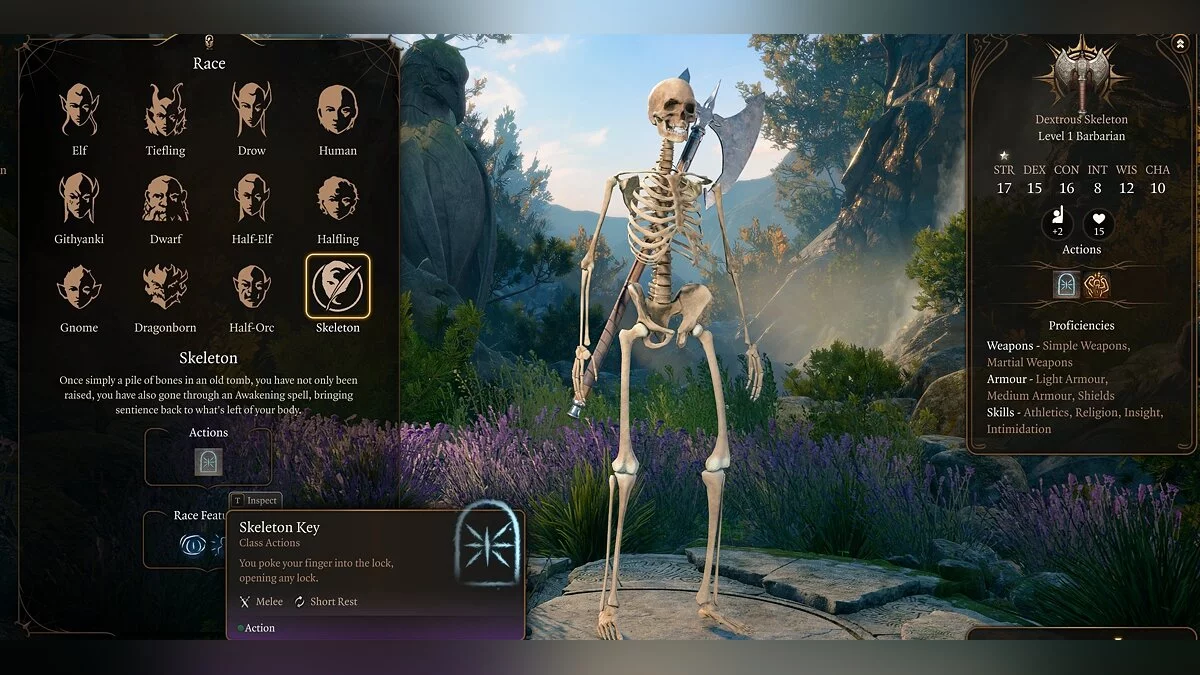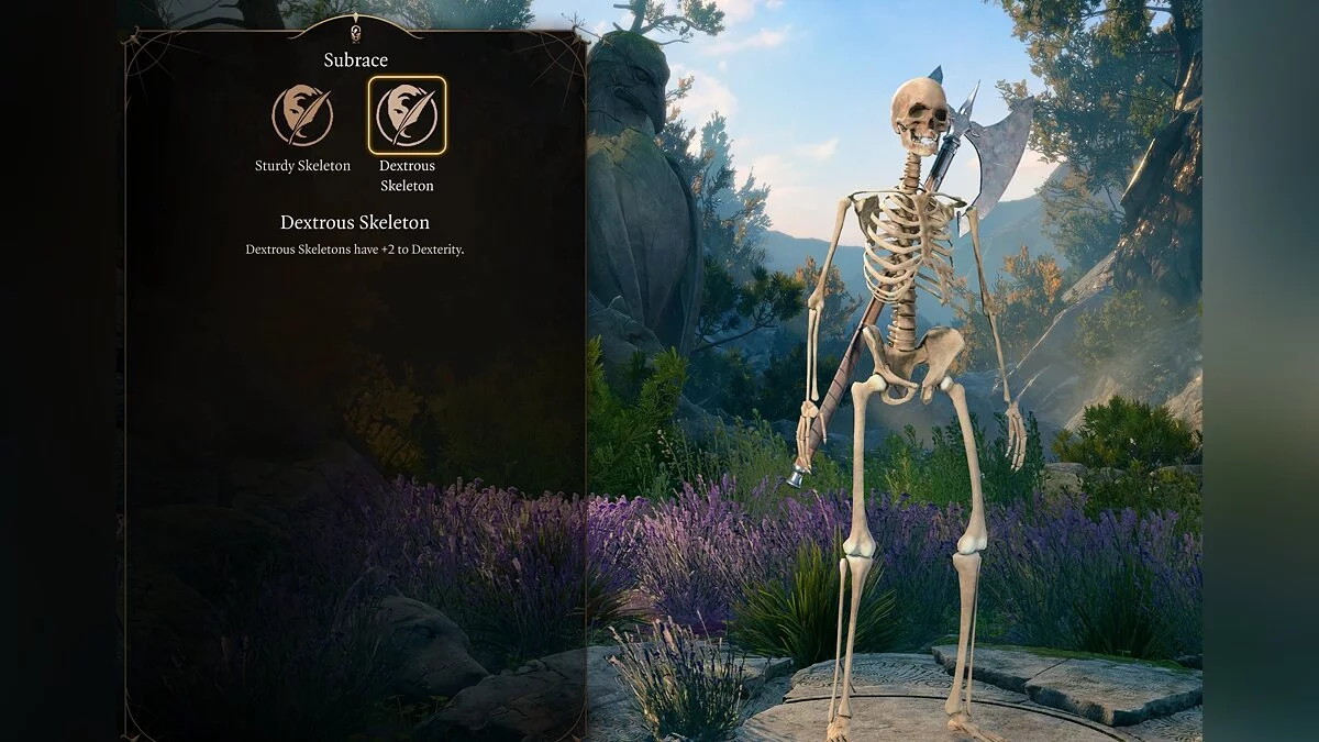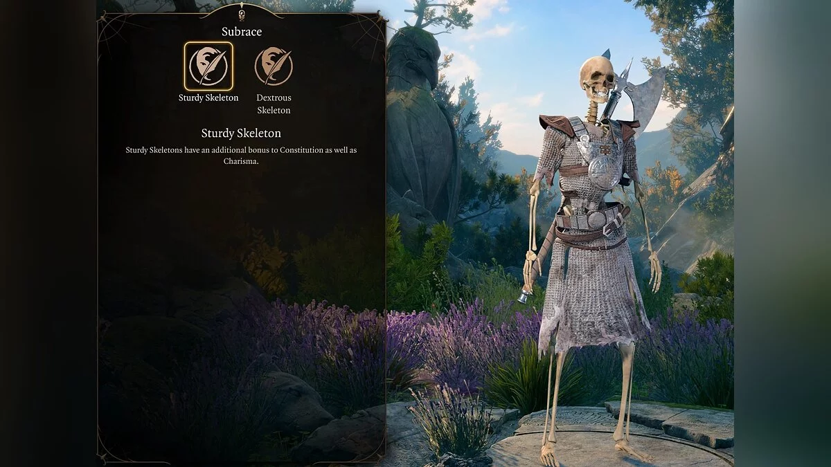 На выбор игрокам доступны два вида скелета (мощный и ловкий). Первый имеет броню, а также +1 к «Телосложению» и +1 к «Харизме», а второй — +2 к «Ловкости».