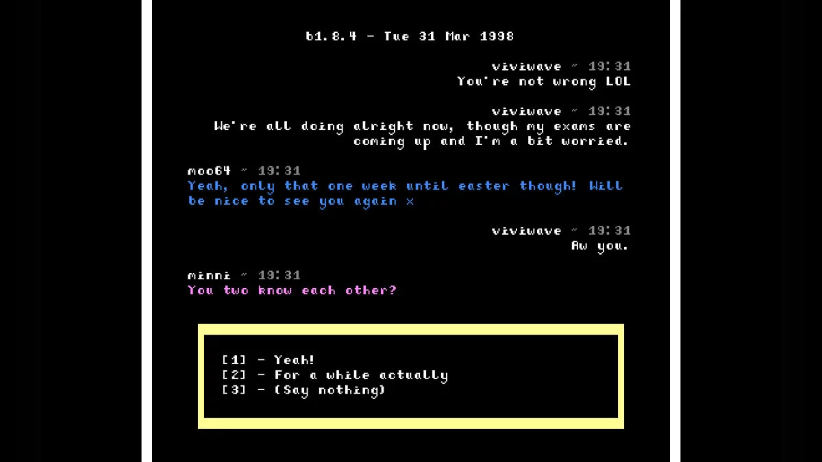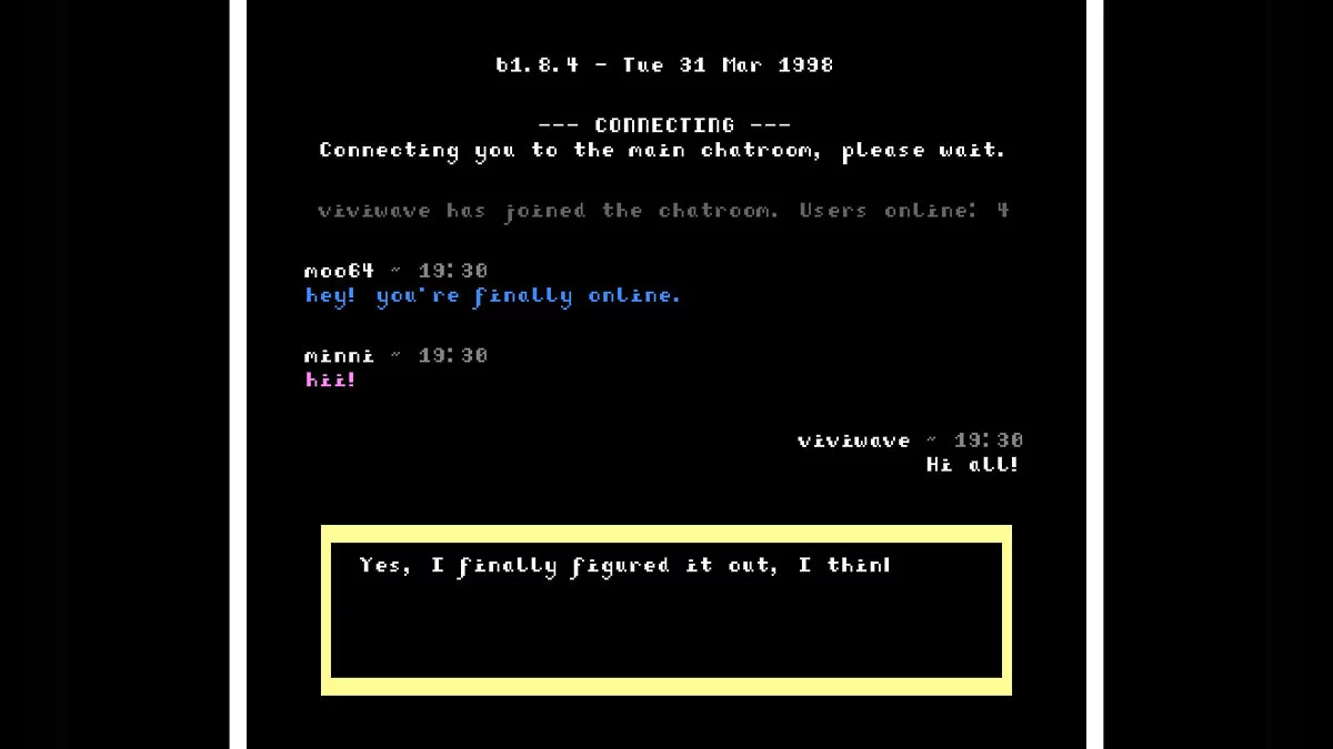 Anachronism — олдовый симулятор общения в интернете, действие которого разворачивается в 1999 году — во времена дискет и ламповых мониторов. В игре доступны несколько концовок. Раньше проект стоил 30 руб.