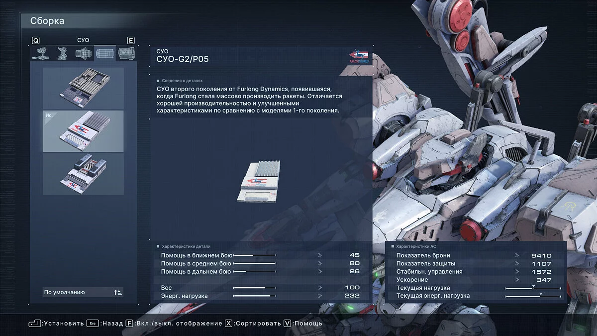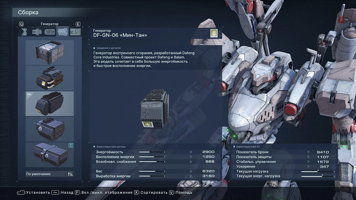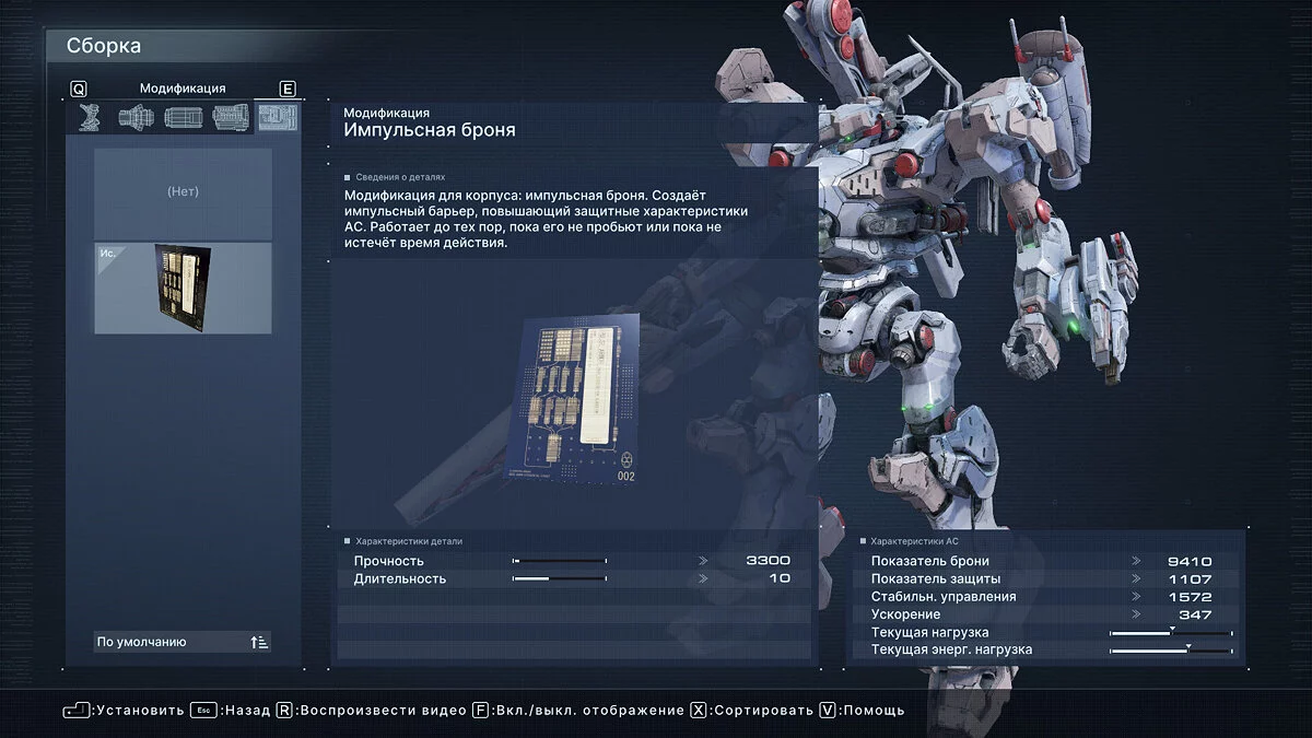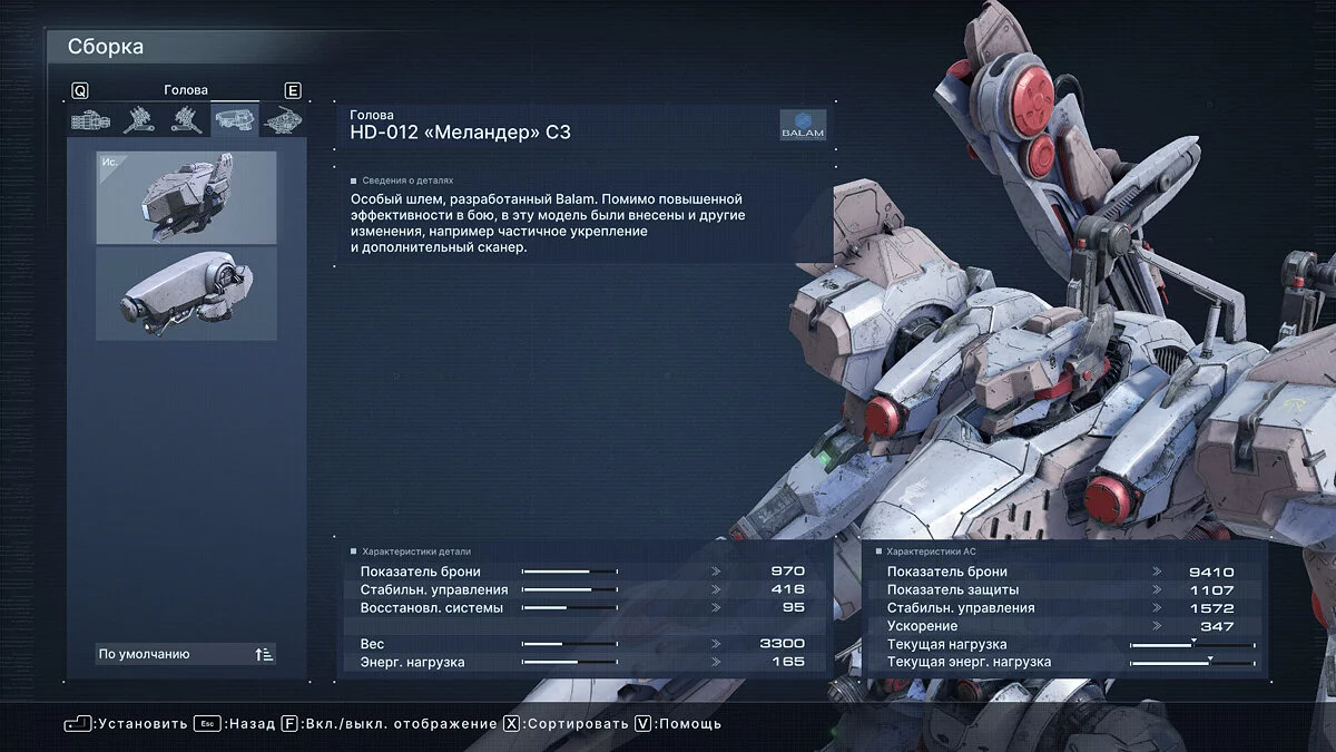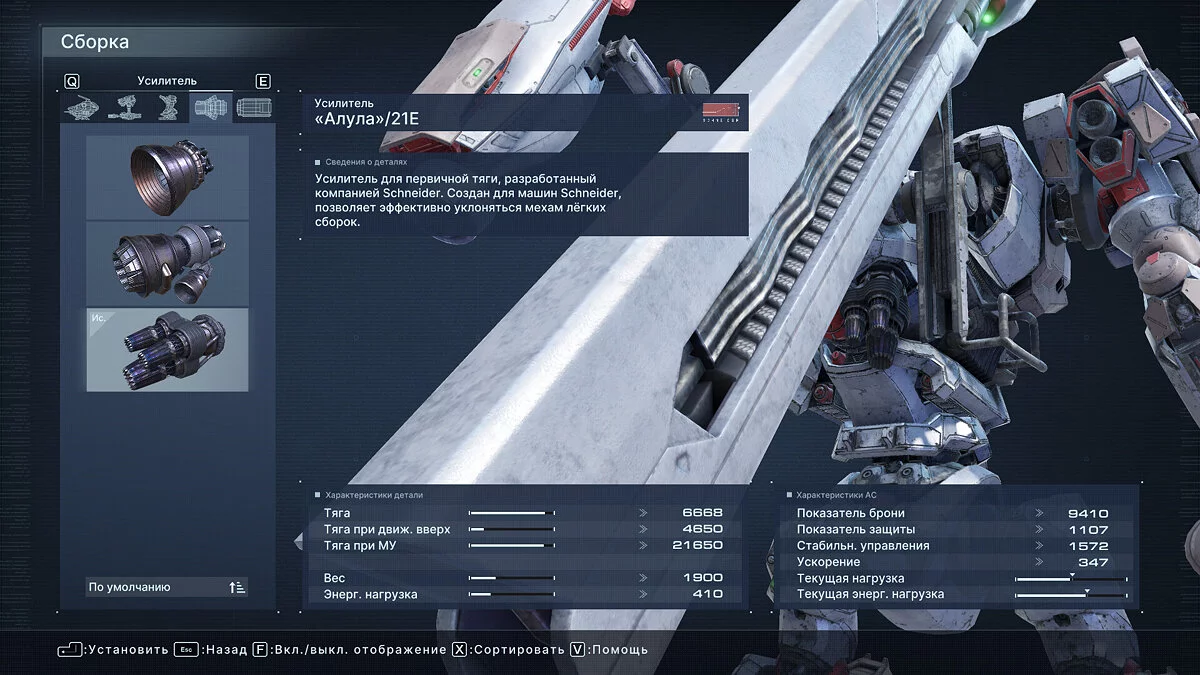 Что касается оптимальных билдов для прохождения арены, здесь все индивидуально и зависит от ваших навыков. Мы проходили большинство миссий Арены с помощью плазменной винтовки Vvc-760PR, импульсного клинка HI-32: BU-TT/A, лазерной пушки VP-60LCS в правом плече и плазменной пусковой установки Vvc-703PM в левом. Полная сборка указана на скриншоте ниже.