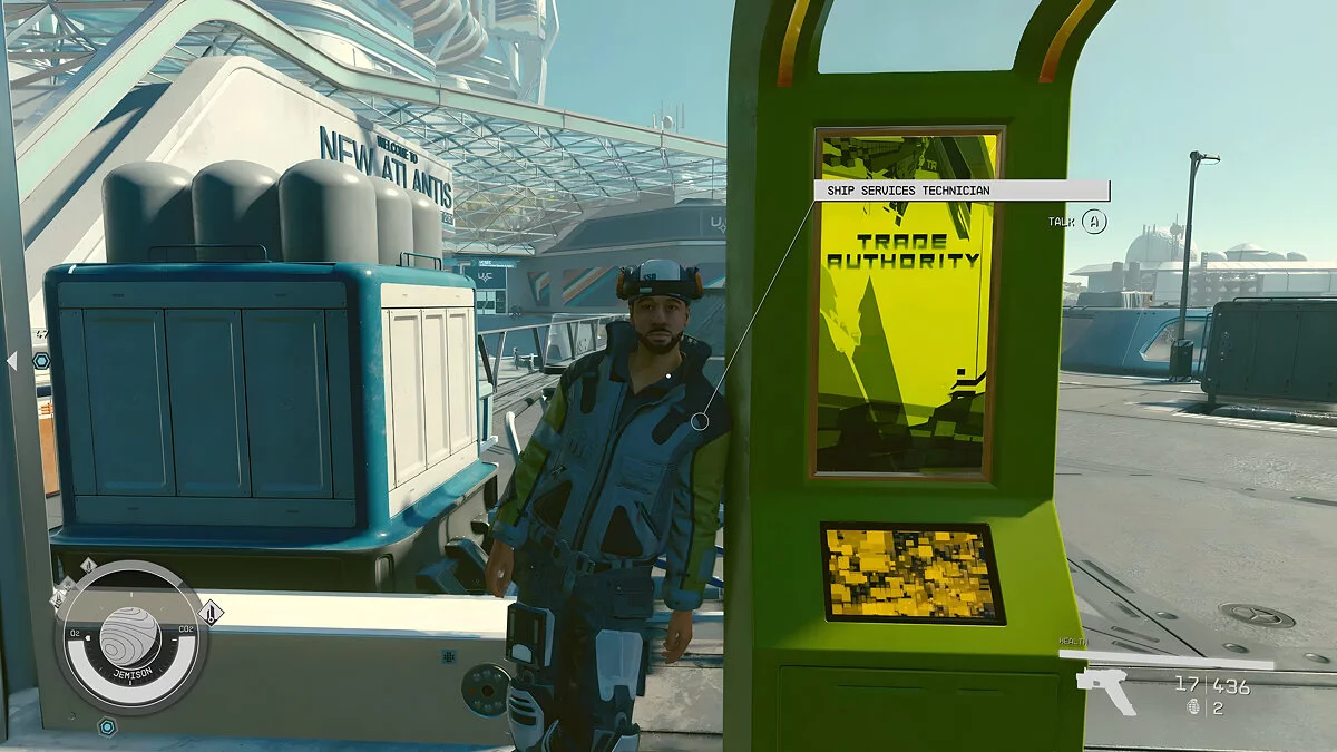 Именно этот персонаж буквально подарит вам своё судно «Фронтир» (Frontier) и порекомендует лететь в штаб-квартиру «Созвездия» в Новой Атлантиде (New Atlantis). С этого момента вам будет доступно первое судно — останется лишь подняться на борт и запустить двигатели. В космосе, конечно, предстоит завершить несколько обучающих миссий, после чего игроки вольны отправиться на своём корабле куда угодно.