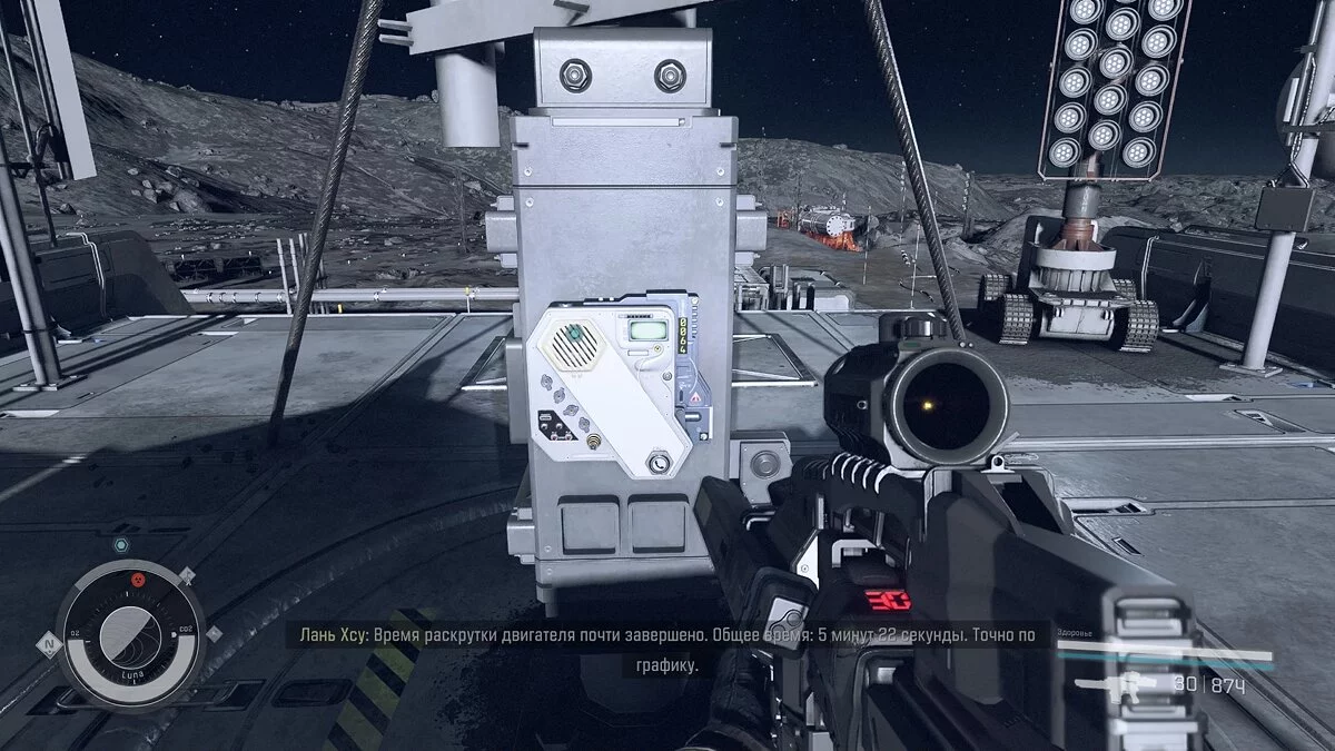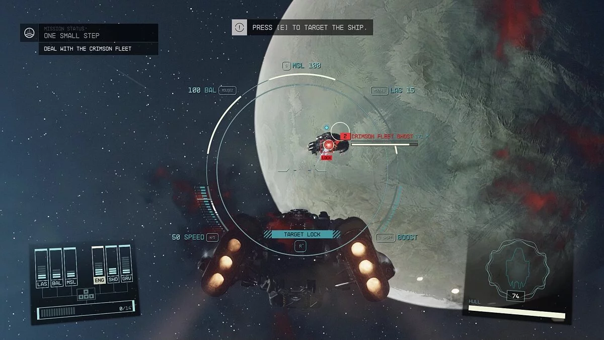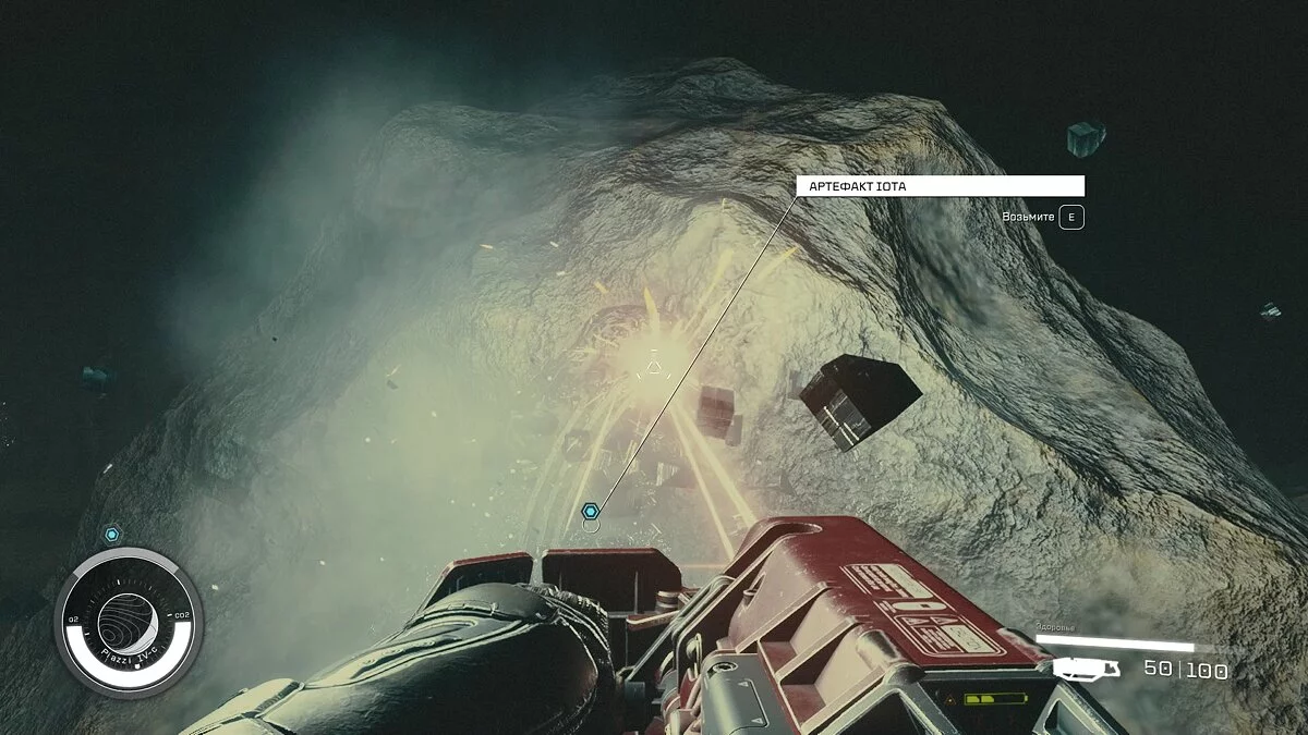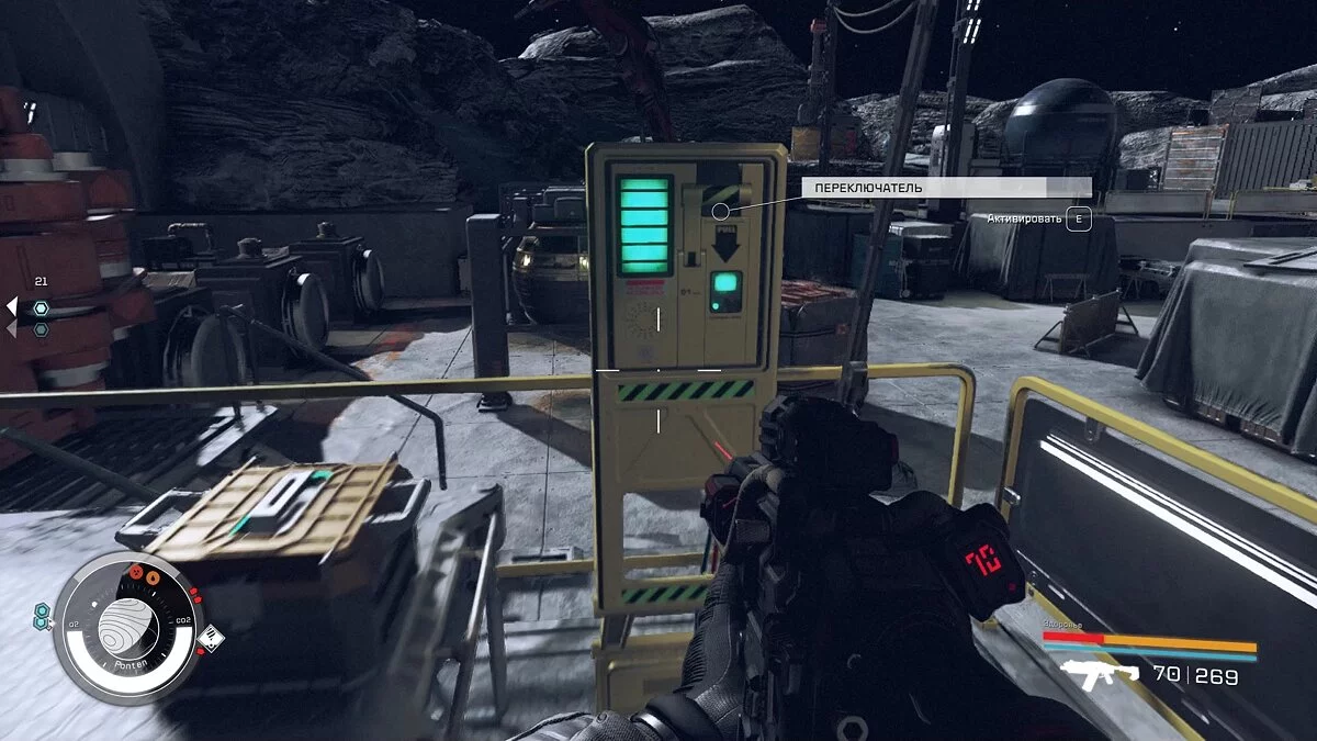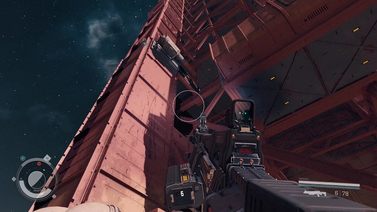 Приземляться на неё не стоит — нужно подлететь вплотную к спутнику, курсирующему неподалёку, и активировать его. Направьте курсор на выделенную область, затем нажмите «E». Теперь зажмите клавишу «R» для активации.
