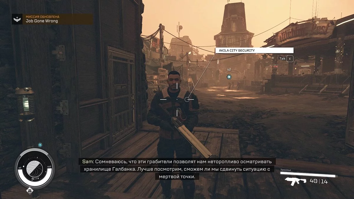 Добравшись до ворот города, вас встретит охранник и расскажет про происшествие, которое произошло в местном банке. Начнётся новый дополнительный квест — вам придётся выполнить его, чтобы продолжить продвижение по сюжету.