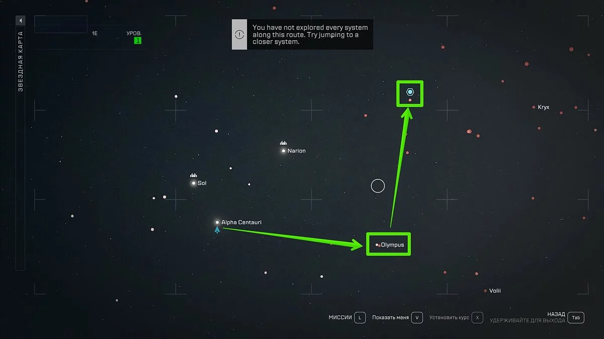 Познакомьтесь с Сэмом, который ждёт вас в соседней комнате. Выйдите в открытый космос, перейдите в меню карты и совершите прыжок на Олимпус (Olympus), а затем в Шайенн (Chayenne).