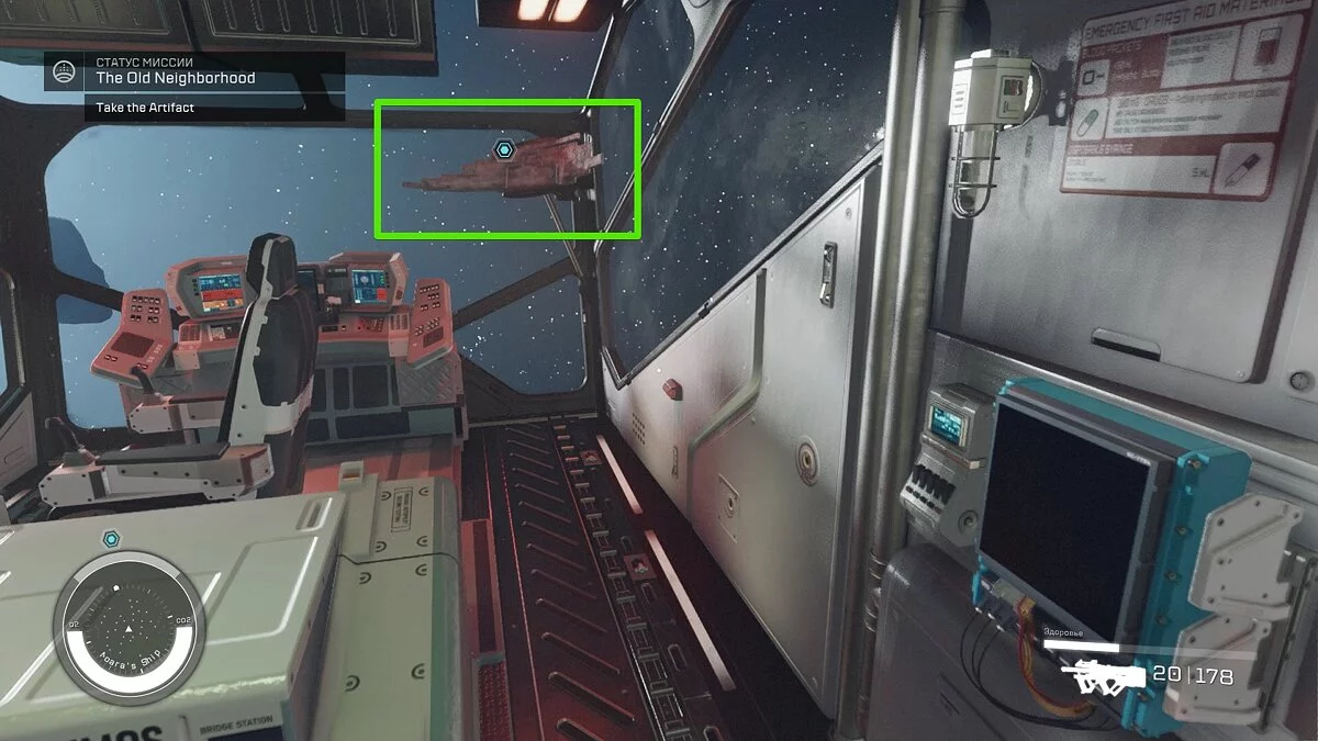 Используйте шлюз за лестницей, чтобы попасть на вражеское судно, и расправьтесь с врагами. В кабине пилота пообщайтесь с Моара, после чего заберите артефакт позади него.