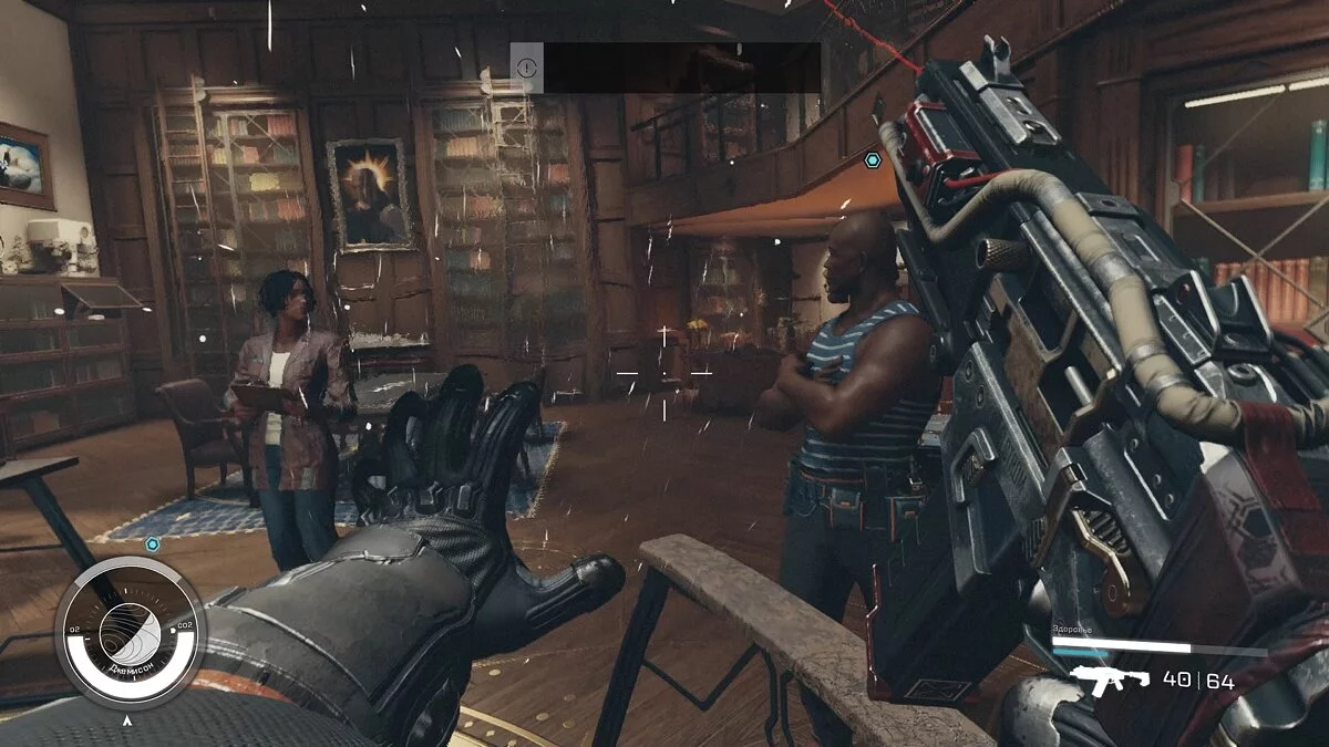 Оба места реальны, но существуют параллельно друг другу. Выполняйте указанные действия, путешествуя между мирами, пока в конце концов не окажетесь в комнате охраны. В разговоре с Итаном можете пройти проверку убеждения. Если справитесь, он отдаст вам мощный дробовик.