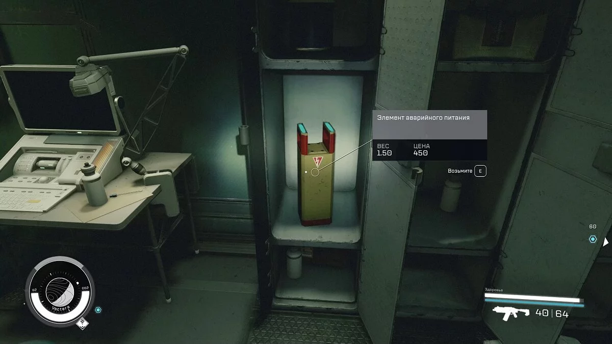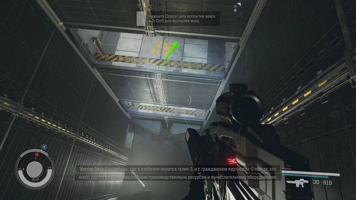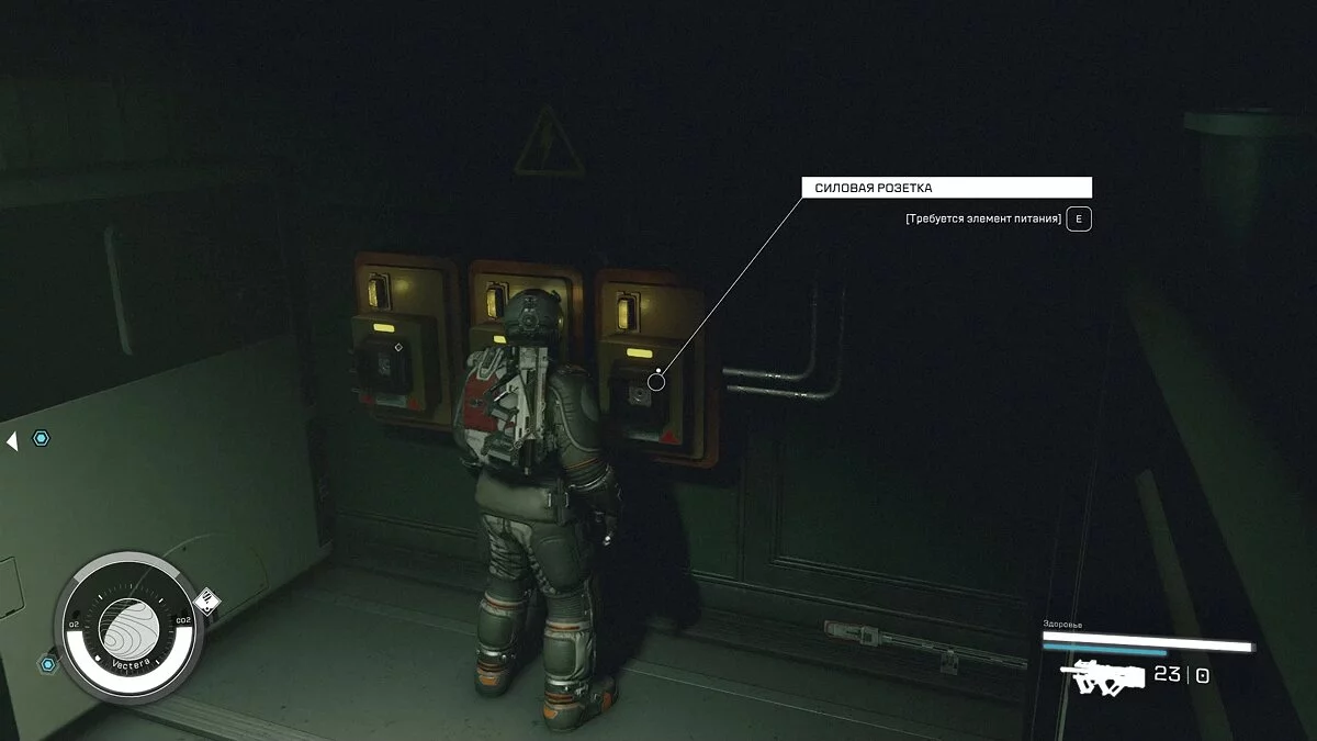 Когда сделаете это, вернитесь к пусковой шахте и поднимитесь к лифту. Добраться можно разными способами — используйте лестницы или же бустпак. Питания не будет, поэтому нужно посетить комнату напротив лифта, подобрать здесь элемент аварийного питания и вставить его в розетку.