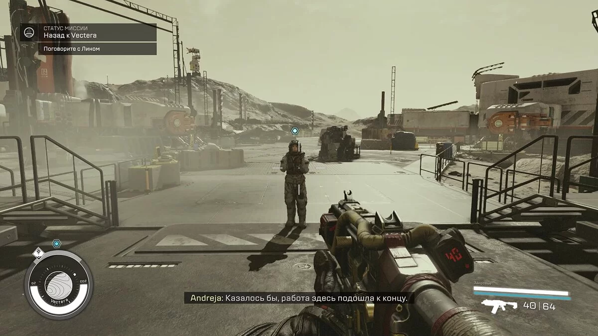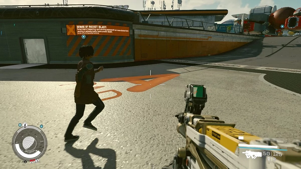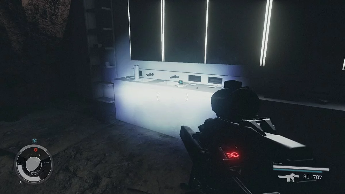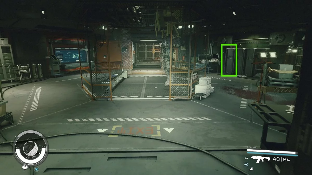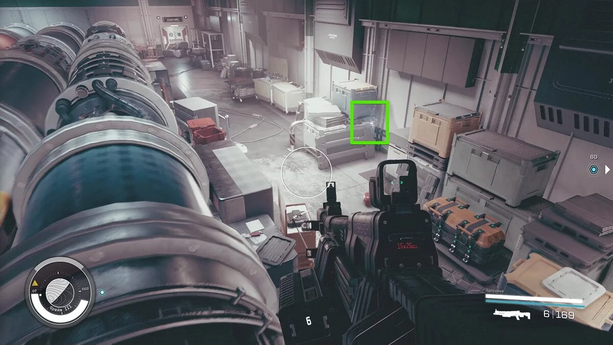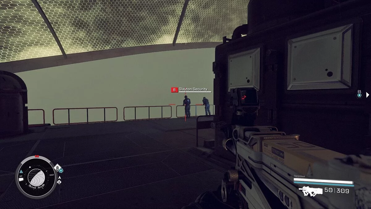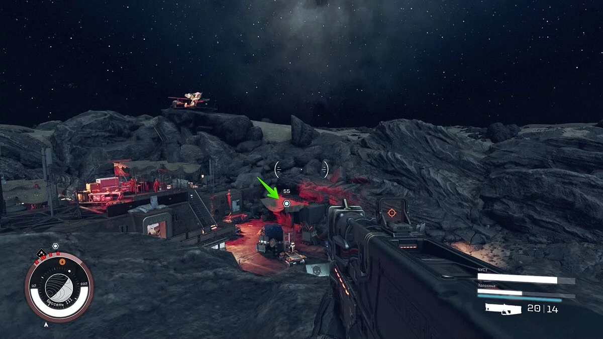 Совершите посадку в точке «Исследовательская станция Nishina» и бегите за маркером. Перед входом в комплекс есть открытый ангар — осмотрите его, чтобы найти неплохой шестизарядный дробовик. Он пригодится на первых порах, а позднее можно будет получить более мощную пушку от охранника станции.