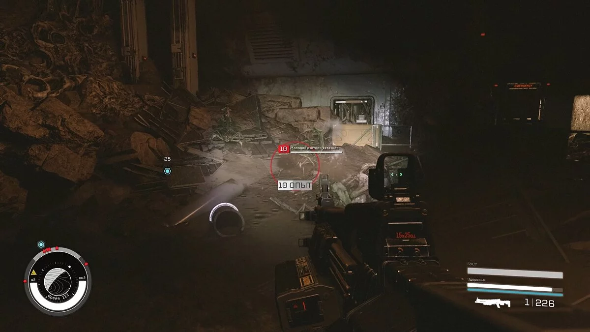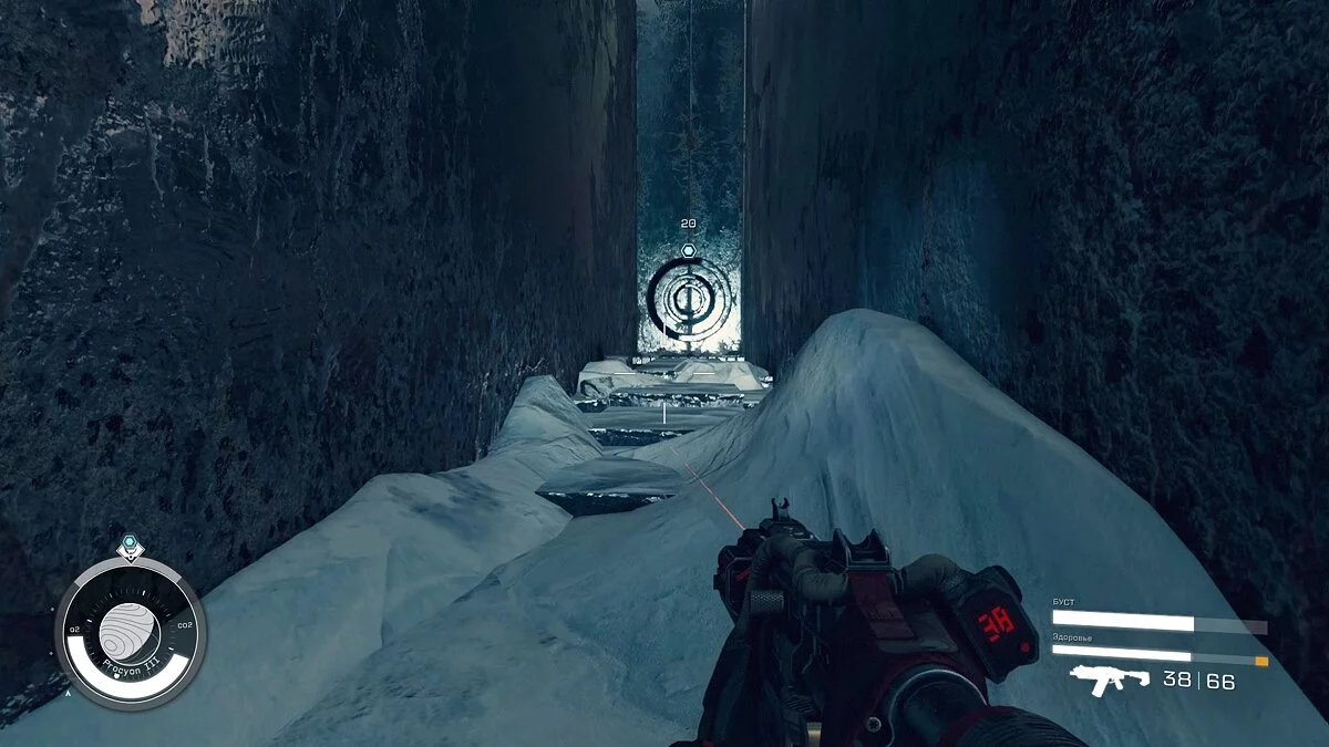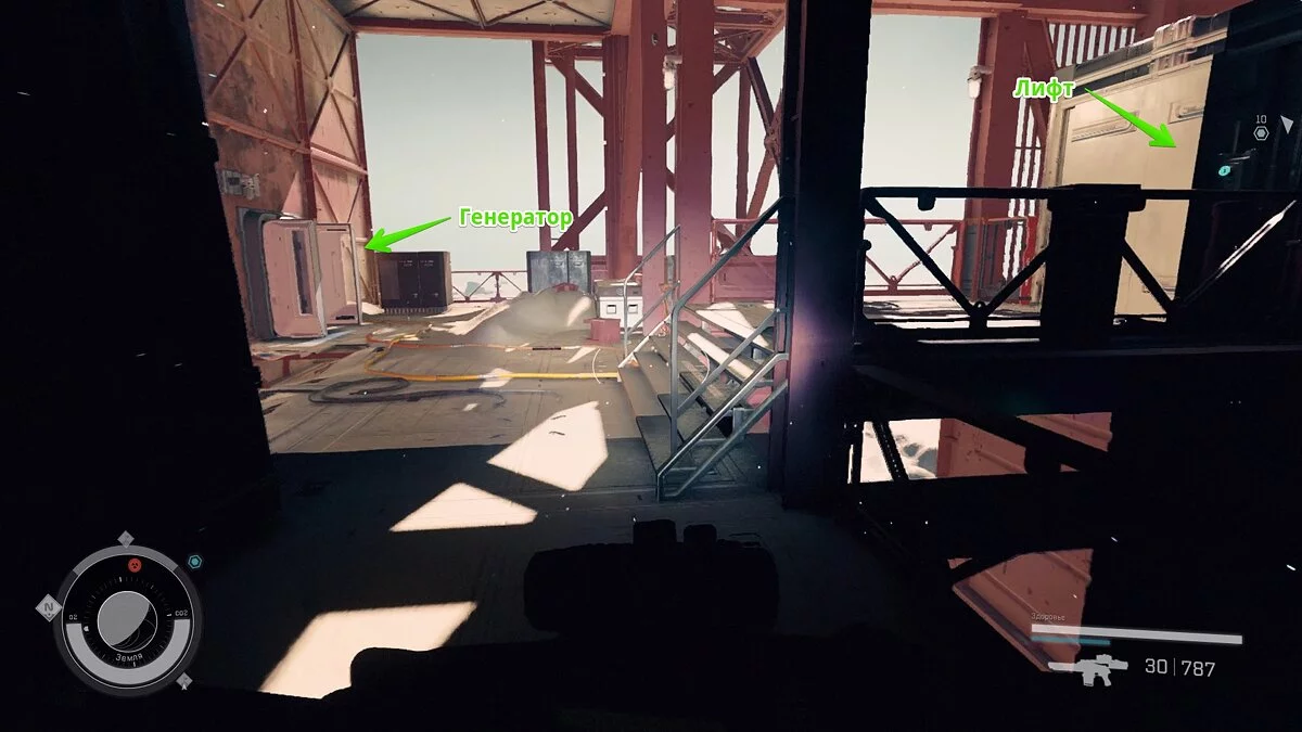 Если у вас небольшой уровень прокачки, советуем не вступать в перестрелку на поверхности, а активировать рычаг рядом с гермодверью и войти в шахту.