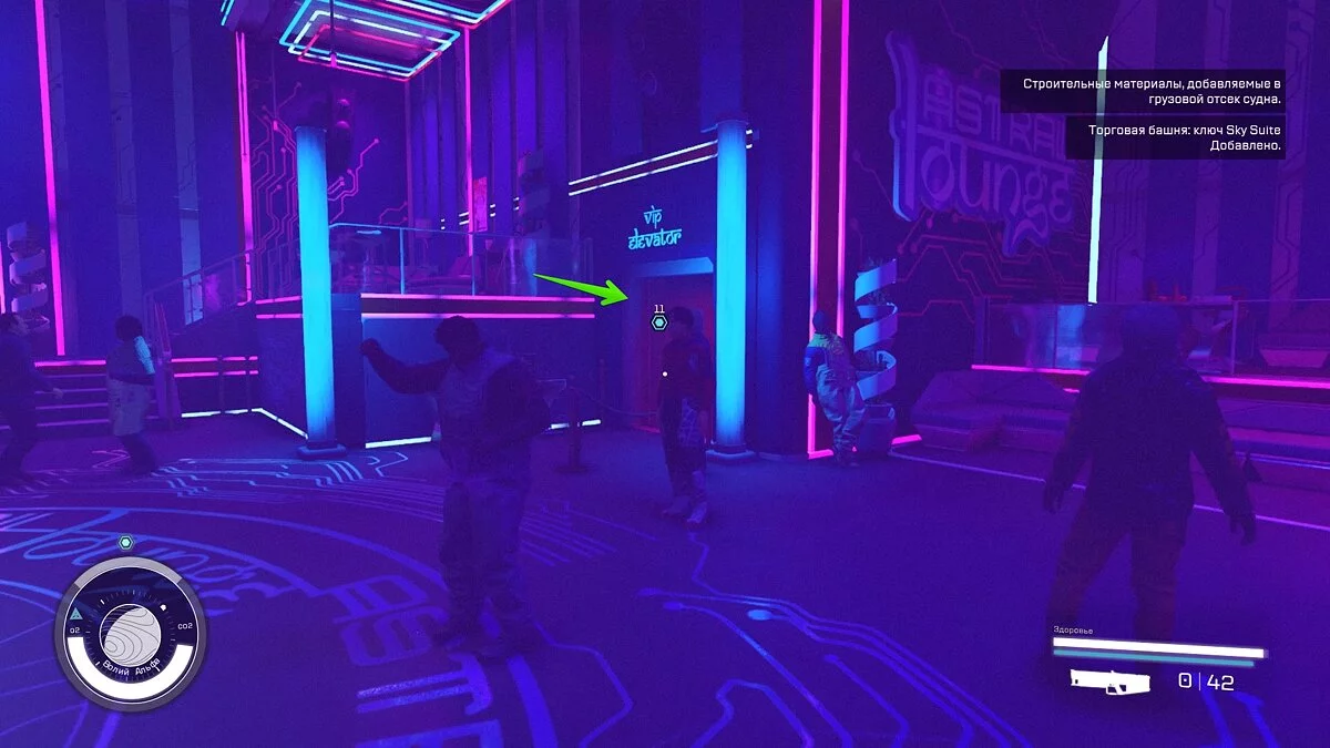 Садитесь в лифт, выберите пункт назначения «Станция NAT» (NAT Station). Теперь следуйте в космопорт (Spaceport). Садитесь в корабль и установите курс в соседнюю звёздную систему.