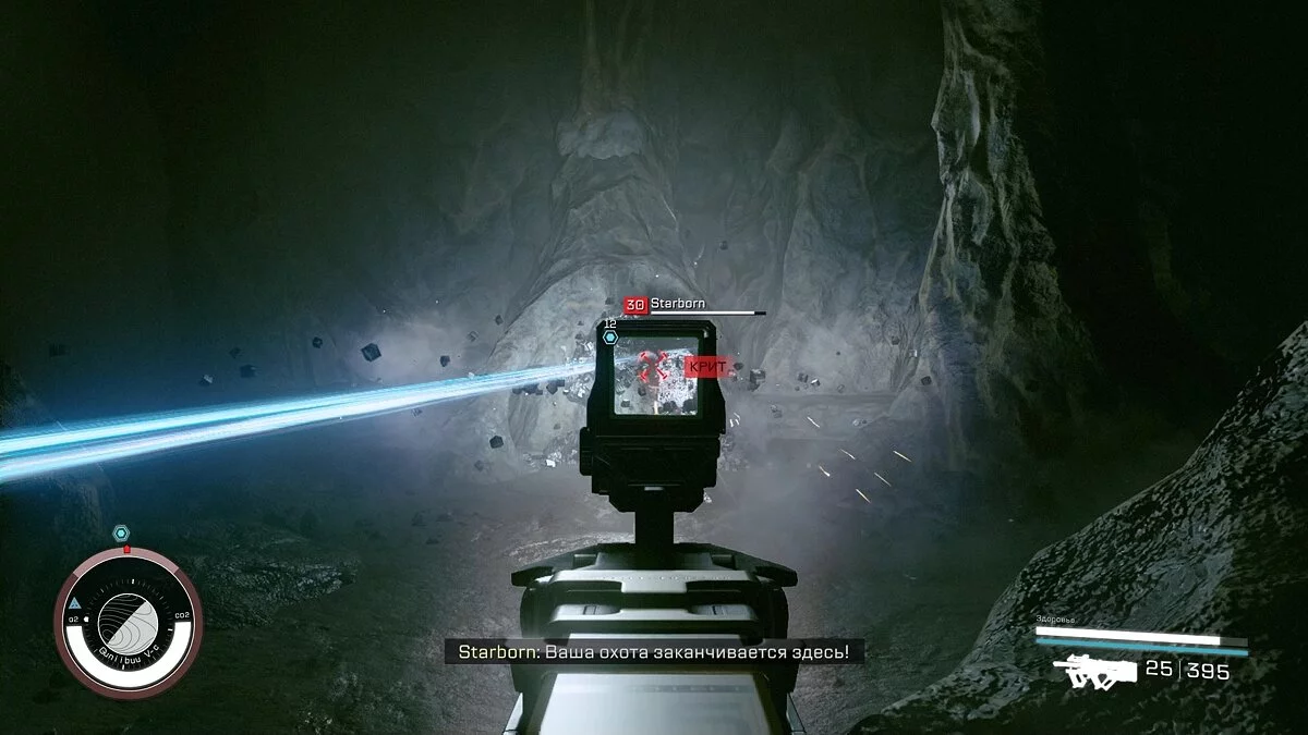 Переместитесь на Тау Цети и бегите за помехами сканера. Открыв устройство, вы также можете отследить неисследованный геофизический объект — бегите к нему. Вы окажетесь у входа в пещеру.
